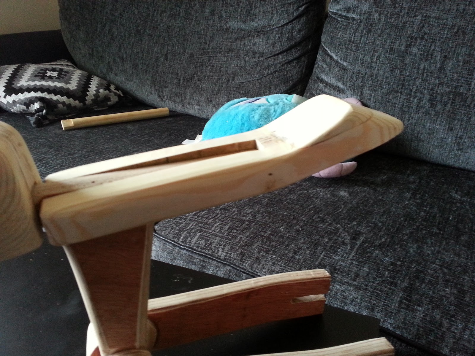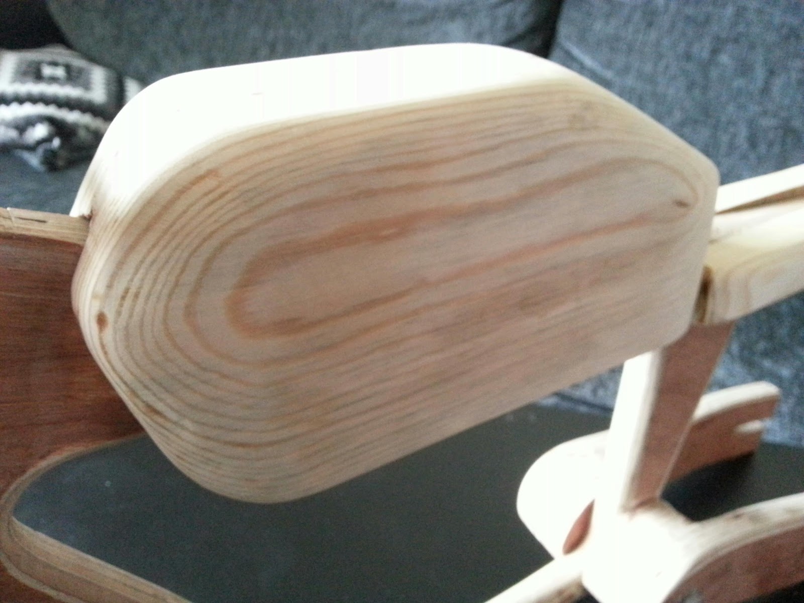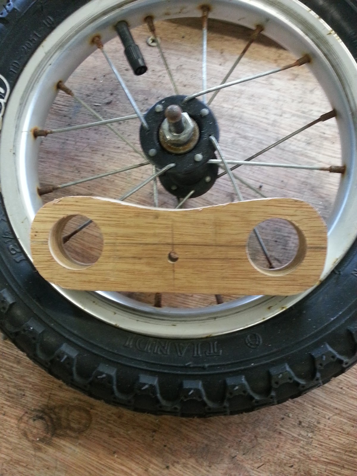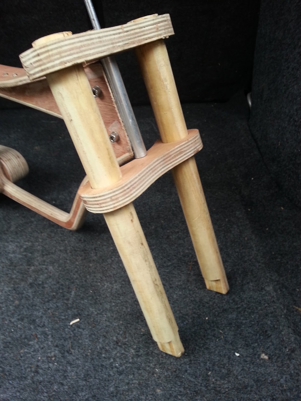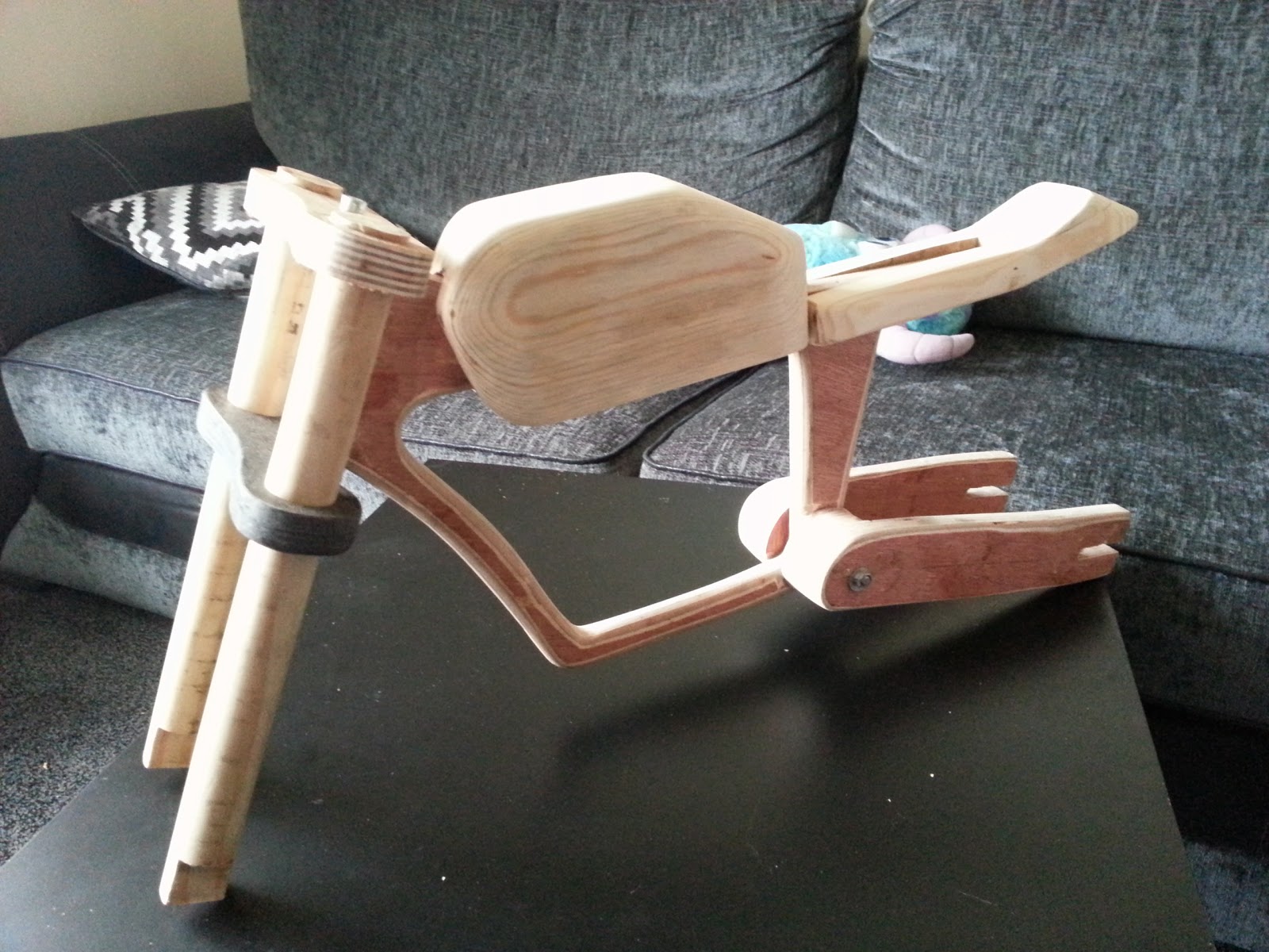 Offered up the frontend to a bike I am building for my daughters 2nd xmas!  Its a TZ750 Balance Bike made of wood (predominantly self-laminated ply).  Forks are made from broom handles, an Ohlins one naturally....