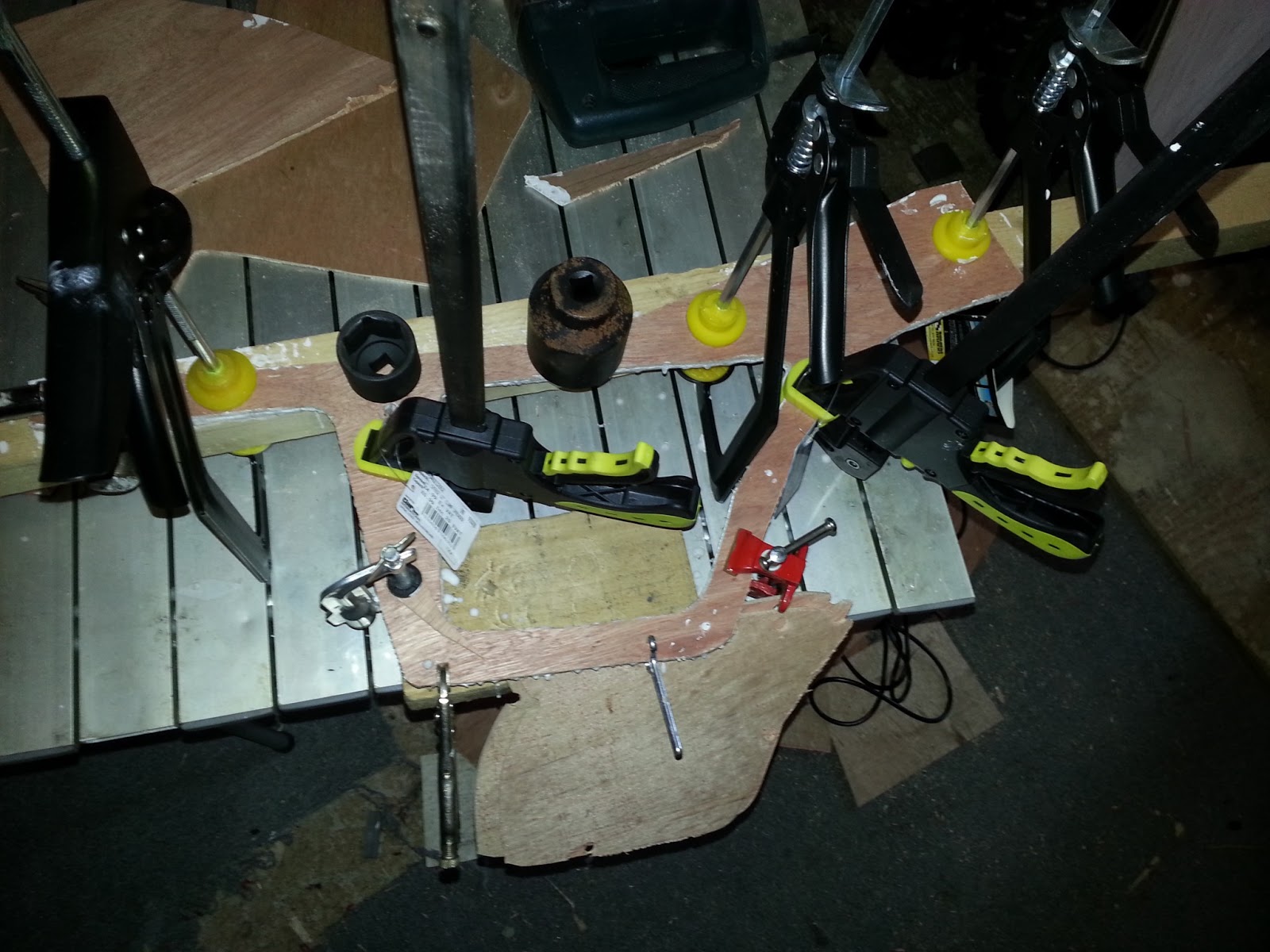 Here it is, glued and clamped.  It still needs sanding to feather it all in nicely but you can now see what I was banging on about.  The previous pictures might be a little abstract until you see its final form :)