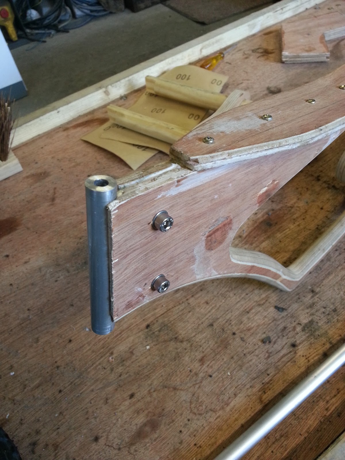 You can see the swingarm attachment.  Yeah its solid and doesn't actually "swing".  I added a 6mm bar through it just as a precaution really then its glued up and clamped.  I sanded it all in leaving it thick as I will be putting the footrests off it later on.