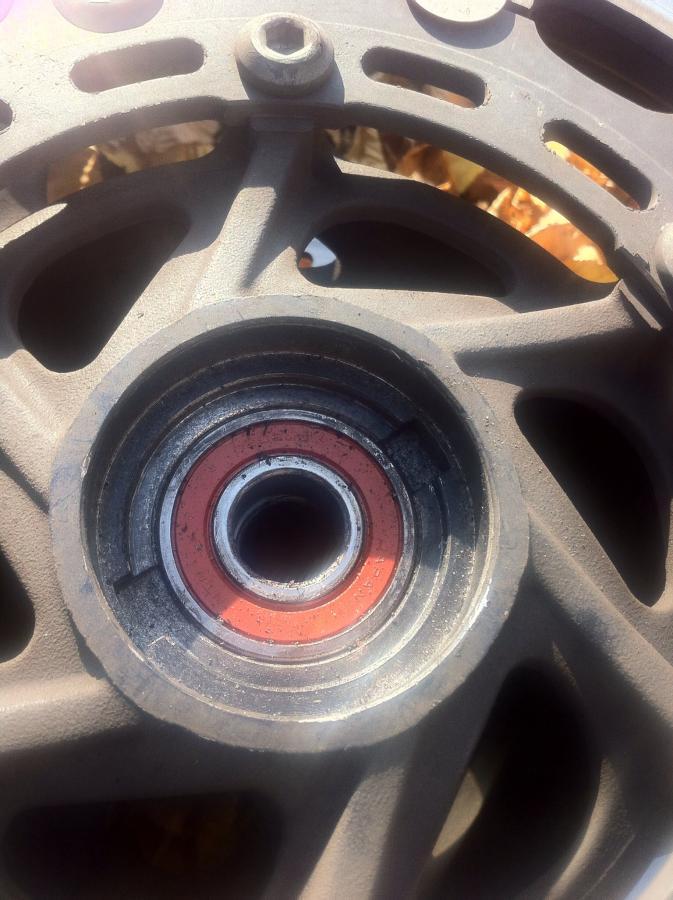 Inside wheel after rubber seal, metal ring washer and drive lugs removed-