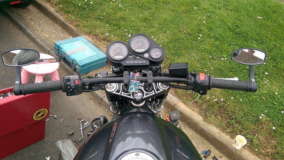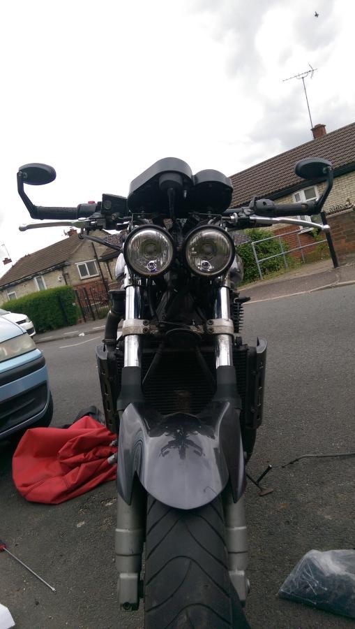 Took it for a spin  to try the braided hoses, much better. Saw one of those new R1's,  very smart, very small!