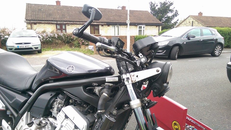 First ride on the Fazer this year. 114 miles, Wrexham, Mold, St Asaph, Llanrwst, Colwyn Bay, Denbigh, Ruthin, home. Dull, drizzle between St Asaph and Llanrwst, and windy,