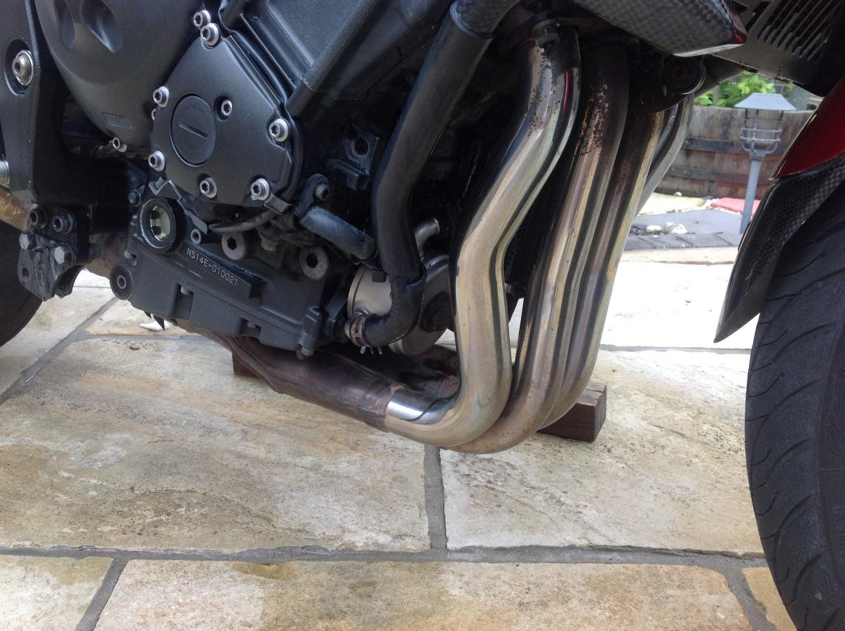 Would be a shame to break the habit of a lifetime & ride it so after yesterdays triumph i just washed it & degreased the downpipes & oil coller area whilst the bellypan is off.