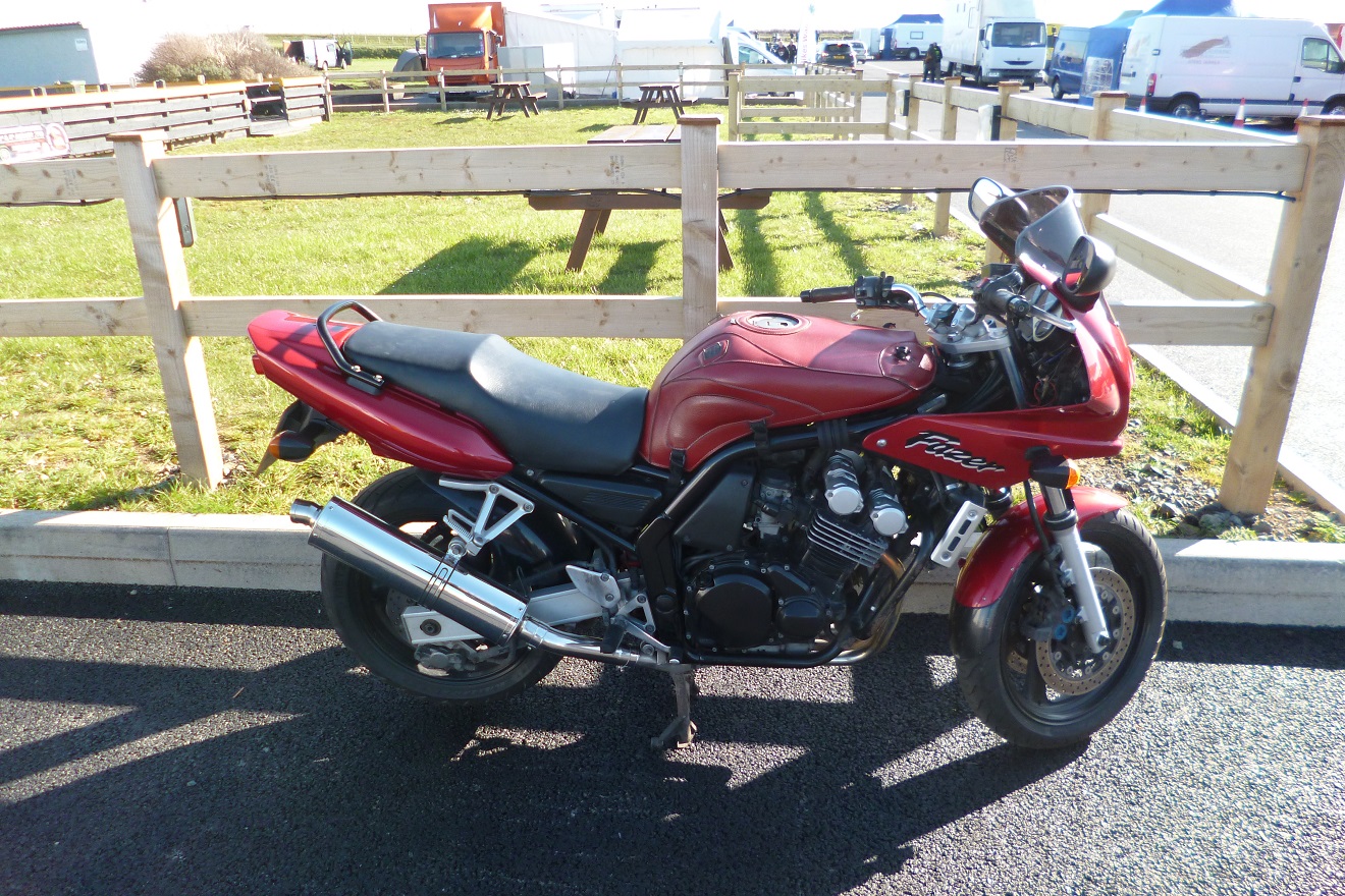 Black T-reg FZS600 at Wickes in Farnborough just before noon.