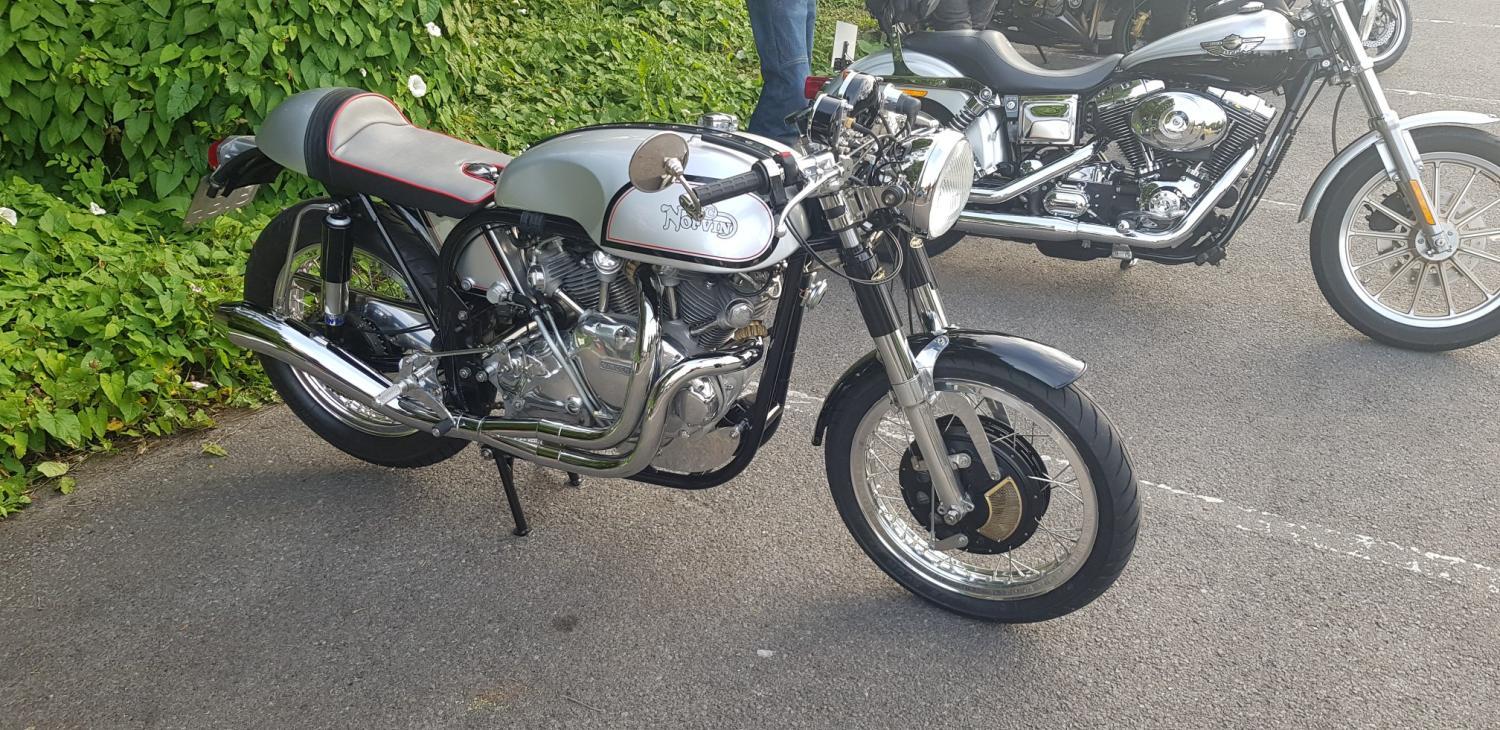 A few bikes were already there as we arrived, which was a good sign, with many more piling in as our helmets and gloves were dispensed with. Our stay would only be about an hour and a half, as the plan was to enjoy the 272 back home, in daylight. This had been my first opportunity this year to take a Fazer groupshot, and this done, I spotted another thou which had been seriously "messed about with". The wheels certainly made it look different. I couldn't locate the owner, as would have loved a chat. Maybe he's on here. Mr.Red and I voted an immaculate Norvin as our favourite bike. It should have been immaculate  as it was brand new in every way, having been hand built to the owners specification. Electric start, 5 speed box,Carillo rods, 4 leading shoe Robinson (copy) front brake, and the bill for that lot, £40k ish. At the other end of the biking scale, an Abarth Yam was a rare modern beast.