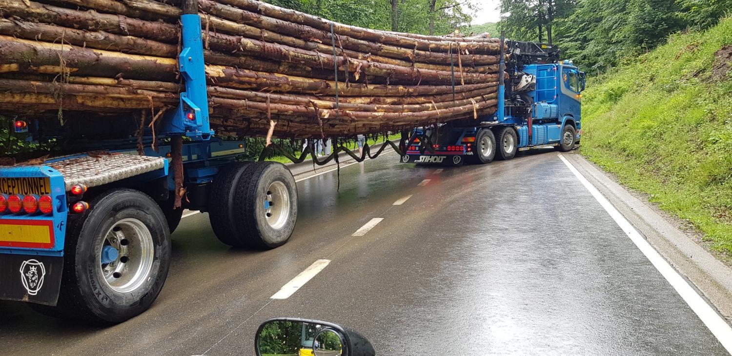 On the way back to the campsite, in the only rain of the day, a car had lost control, hit the bank before ricochetting back into the road. The following lumber truck lost part of its cargo in taking avoiding action. The trucker calmly manoeuvred his wagon into the necessary position, operated the grab machine to reload the fallen logs, and drove off leaving the wrecked car driver to sort out his own problems. Fair play Jean Marc.