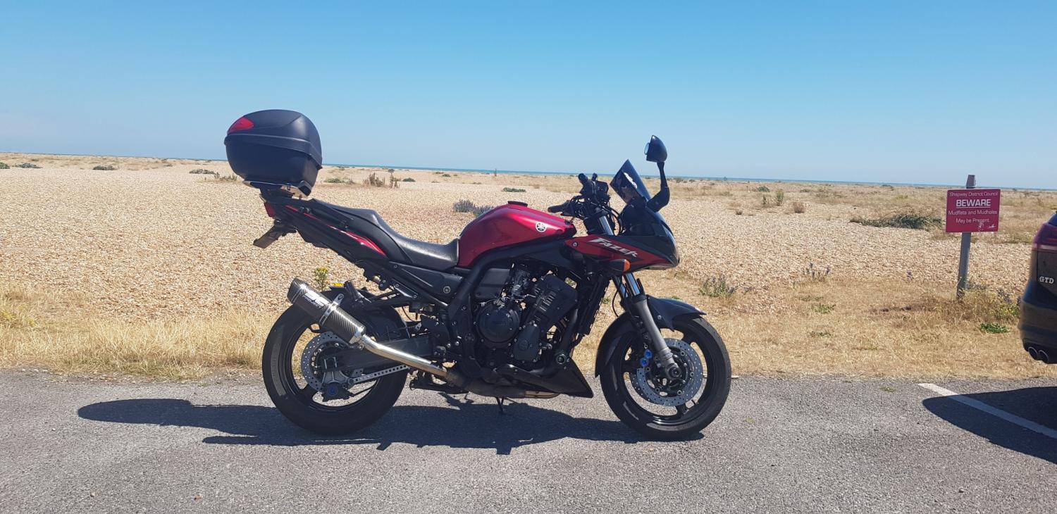 Nice early start yesterday, and in the cafe eating breakfast at Folkestone by 09:30. Only out for the morning, so back tracked on the way we’d come with a slight divert into Woodchurch for a couple of cooling shandies. After clocking just 166 miles today, the Fazer can enjoy a bit of a rest for a few weeks now, as two weekends of racing coming up, WSB at Donny and BSB at Brands. Time to break out the sun cream I think.