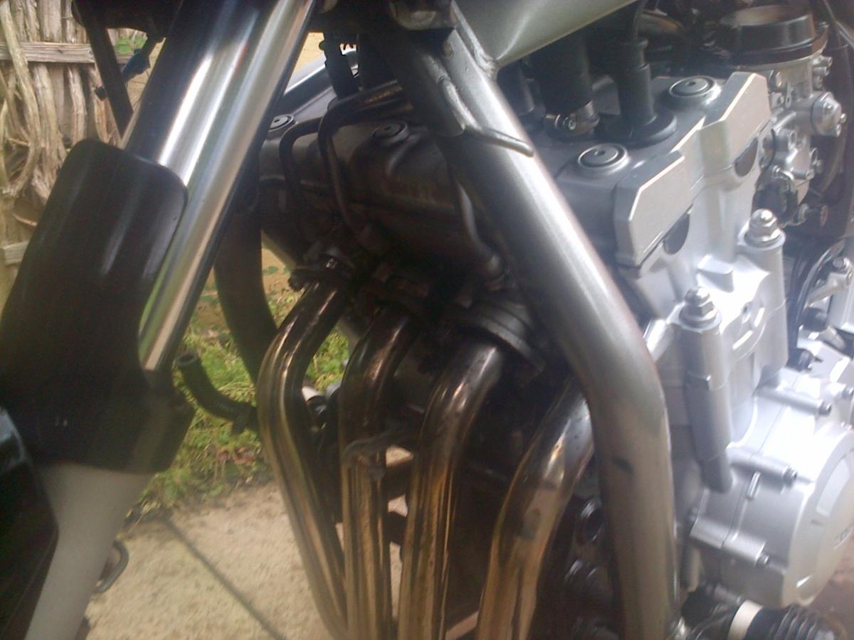 I started the jobs I was planning for winter , removed the battery , fuel tank and radiator so I can remove the ais and paint the front of the engine. Loosened off the exhaust header nuts which were surprisingly easy to undo - then rain stopped play .