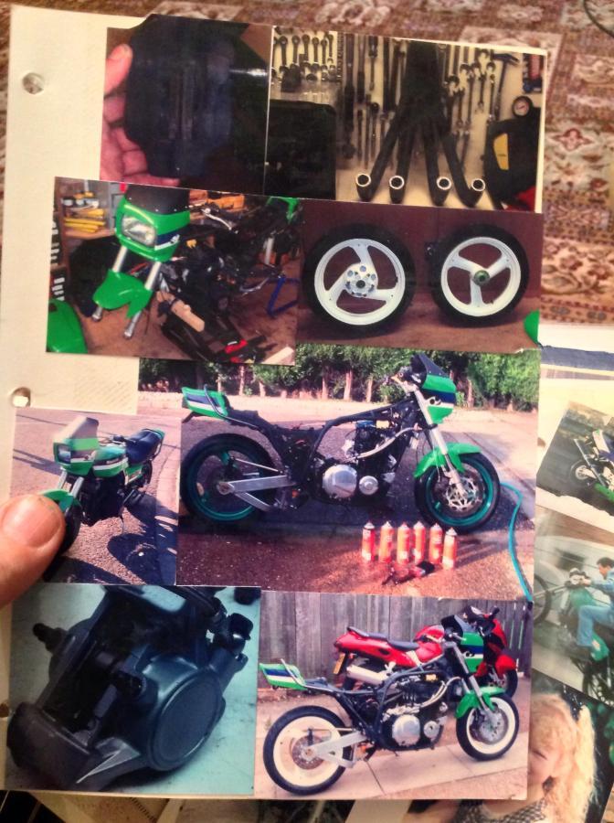 Looking through me scrapbook I remembered how you used to be able to buy eighties stuff cheap before it all got a bit mental like it is now..seventies and eighties bikes fetch ridiculous money nowadays. This was about ten years back I think. I came across this Eddie Lawson rep rusting in a back garden having not run for six months. Whilst it was tatty it had an 1170 wiseco block, fzr1000 front end and fzr600 rear wheel in a nice alloy swinger. Hardly anything needed doing, it was all bits and bobs. Got it running( coils and knackered stator plate)built up some weld on the header pipe faceb and filed them flat so the blowing exhaust was sorted, painted the wheels white etc etc...all simple stuff, mostly just cleaning up.