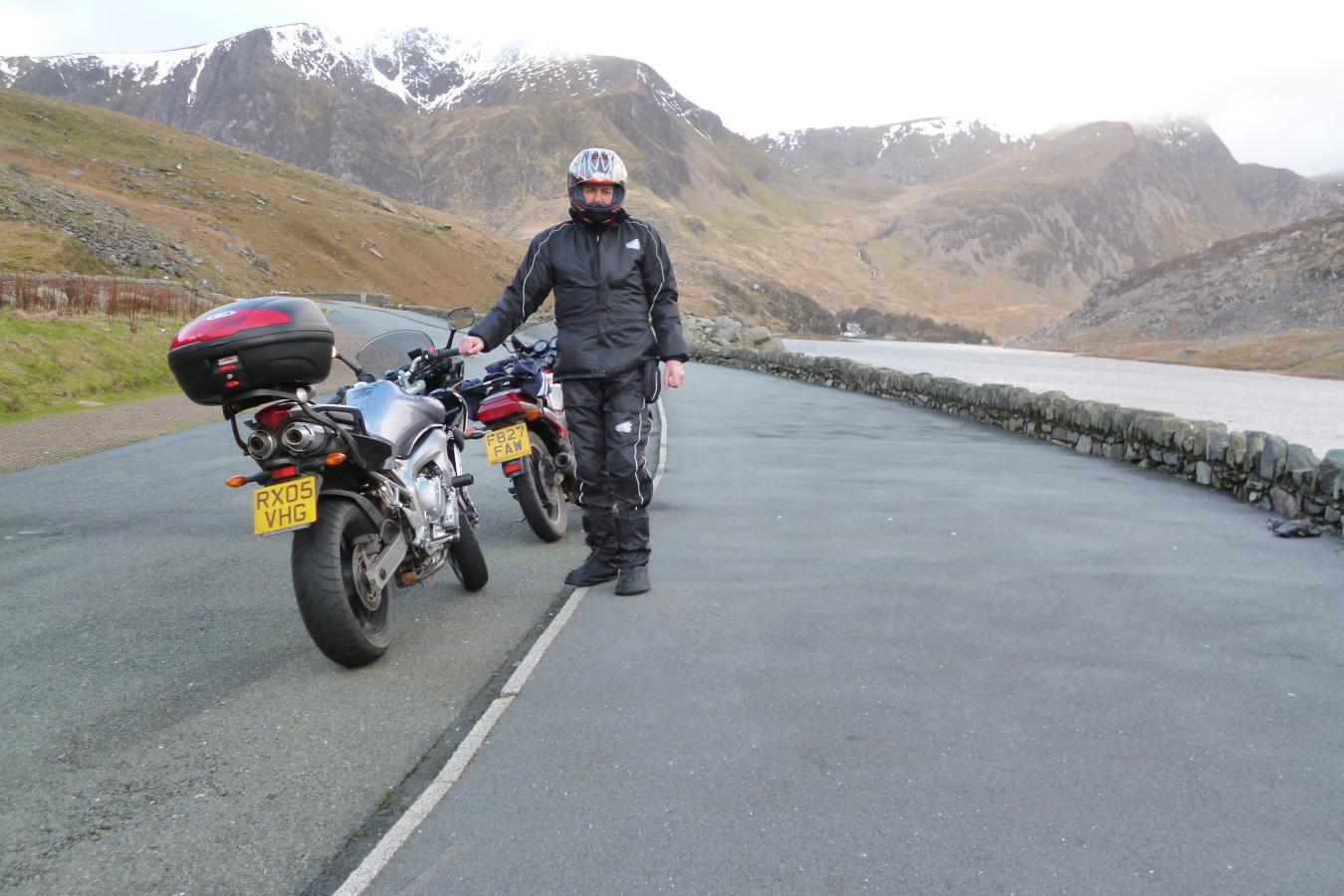 130 miles on the XJ600, in the dry for once. Wrexham-Cerrig-Betws y Coed-Llyn Ogwen-Bethesda-Bangor-Llanfairfechan-Penmaenmawr-Colwyn Bay-Betws yn Rhos-St Asaph-Denbigh-Ruthin-Nant y Garth-home. The cafe on Bangor Pier was shut so had dinner in Colwyn Bay. Left at 7-30am as rain forecast in the afternoon. A bit nippy in the Ogwen Valley, see photo.