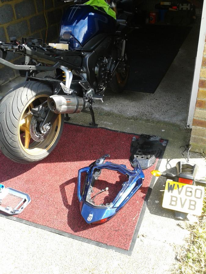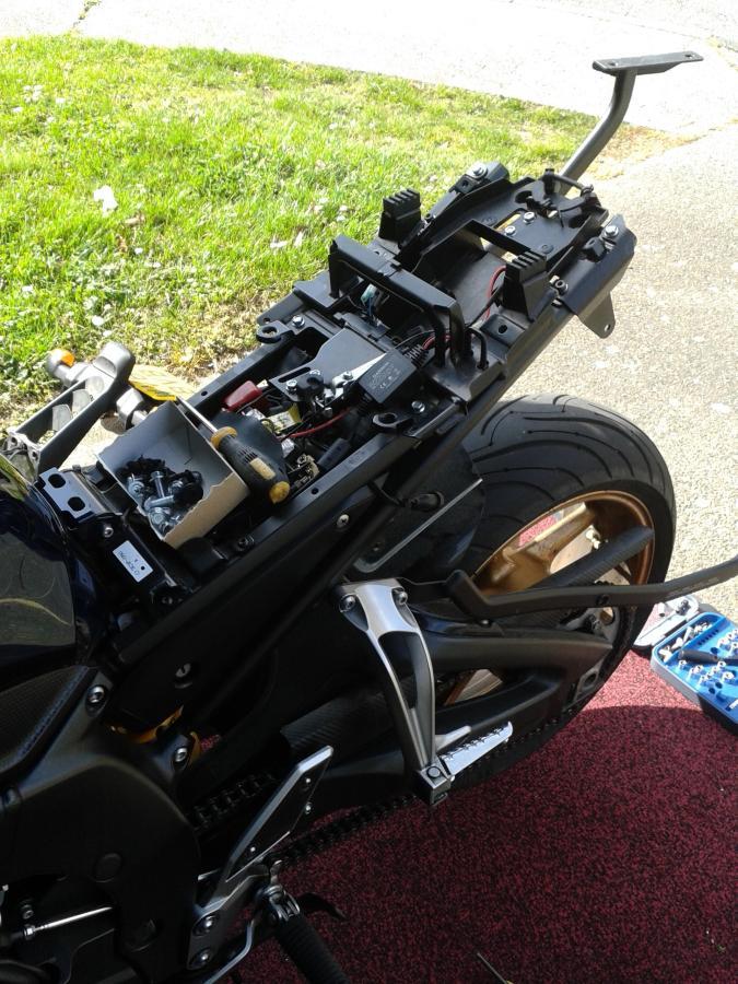 Had to take all the back end off just to fit a givi rack and make my bike look ugly :\ hope shes happy :lol
