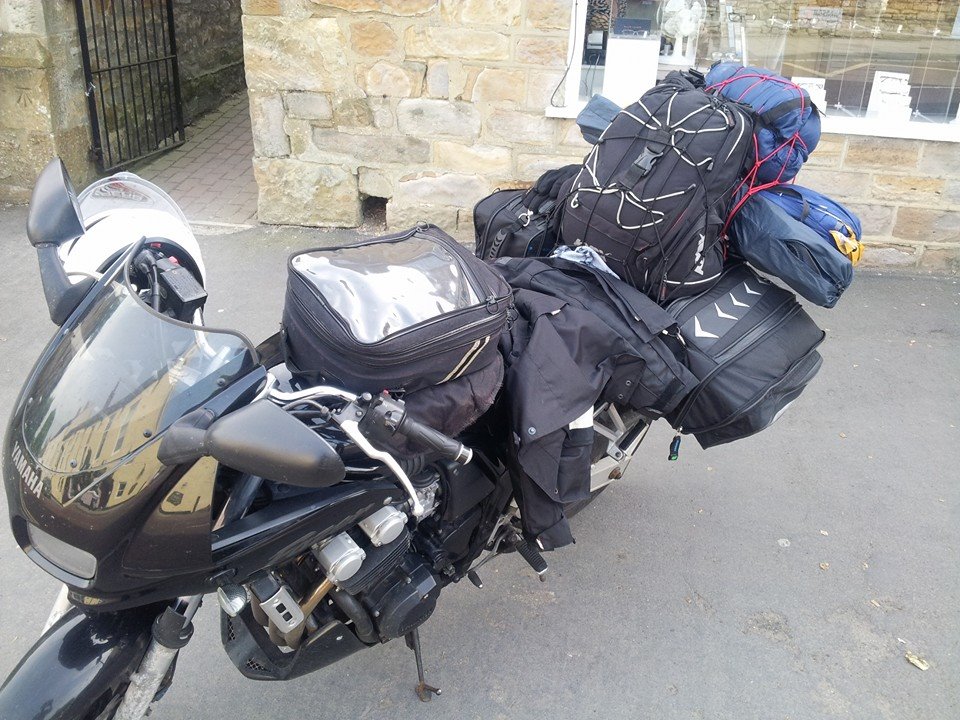 Here's my bike from a weekend away just gone. Think I used 2 webbing thingy's, and about 6 or 7 bungees. If I'd had more I would have used them too.