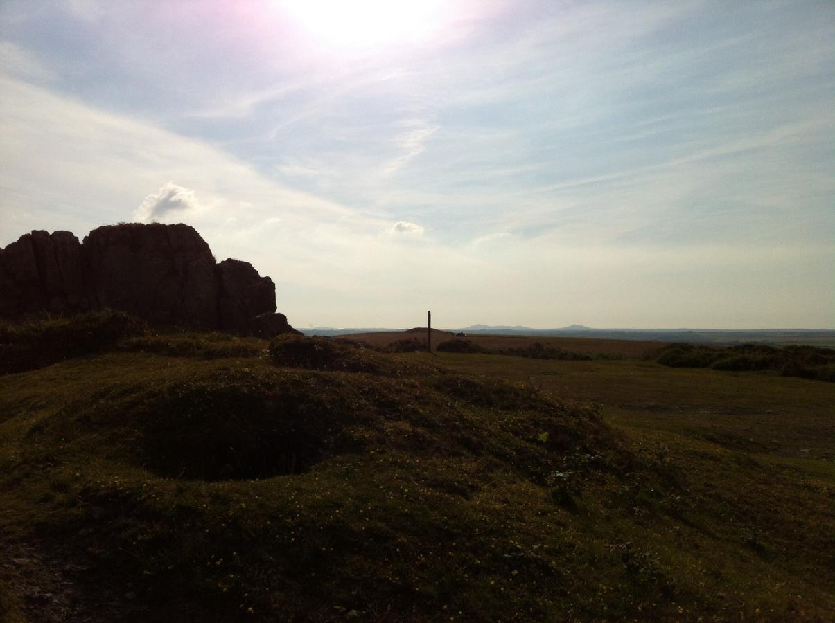Took the noggyfighter out for one last bimble......mainly to confirm that everything is fully operational before she goes into space dock.......but also to say farewell :'( ........i went some very small farm roads locally on a quest to find an elusive hilltop landmark that i have been seeing for years but never been to......mostly guessing and hoping and i finally got there.....it is called Plumbstone Mountain & looks suspiciously like a ancillary to the ancient Presseli Hills and all their iron age and older links.........then i got on to some more major coastal roads and enjoyed the sun.