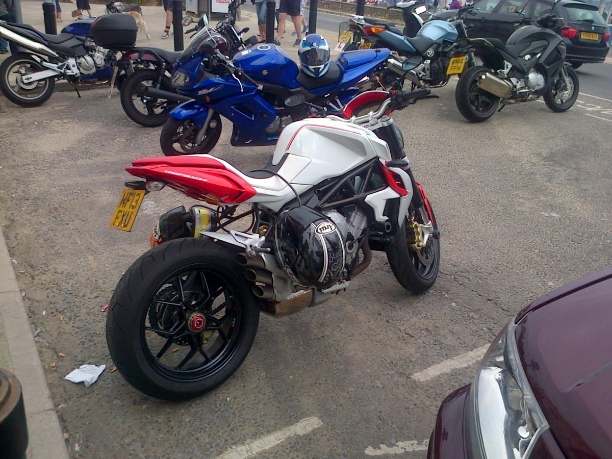 Went for a ride down to Weymouth via Chew valley , up over the Mendips onto Shepton Mallet along the A37 to Yeovil , then onto Dorchester and Weymouth , the roads were surprisingly quiet but Weymouth was packed , nice Augusta in Weymouth .