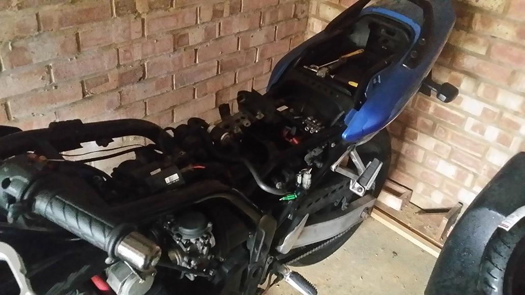 I got out in to the garage and begun the work on restoring my 600 back to some sort of rideable condition - today this meant removing the carburettors to replace them with the set I got from the noggyfighter. Didn't take too long but with the rain and the cold I decided to head back inside as I plan on replacing the throttle cables so there was no point in fitting the new set.