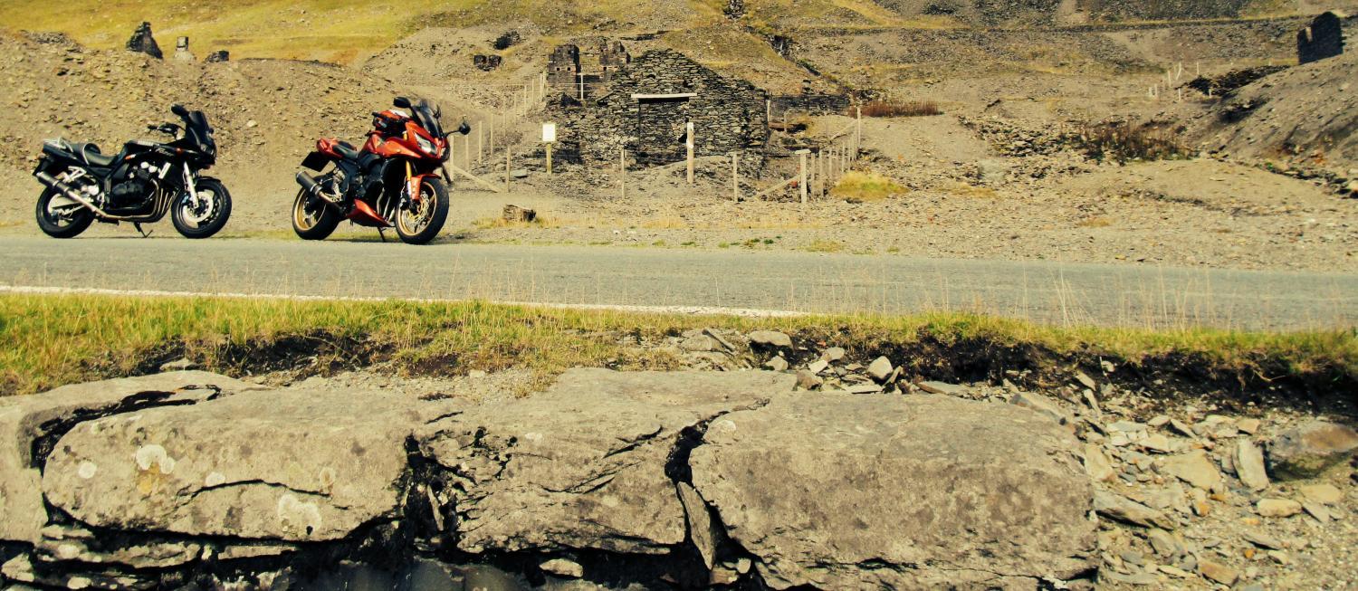 So me & pilgo met up at Aberystwyth and then yesterday we spent the day on some of the more obscure roads......not too fast...loads of stops for photos and refreshments.....no deadlines or mileage targets...just enjoying it....did the old slow road from Devils bridge to the Ellan Valley dams and then North to Llanidloes before again going cross country on a B road and cutting up northwards towards Machynlleth ......then onwards to Corris and beyond.