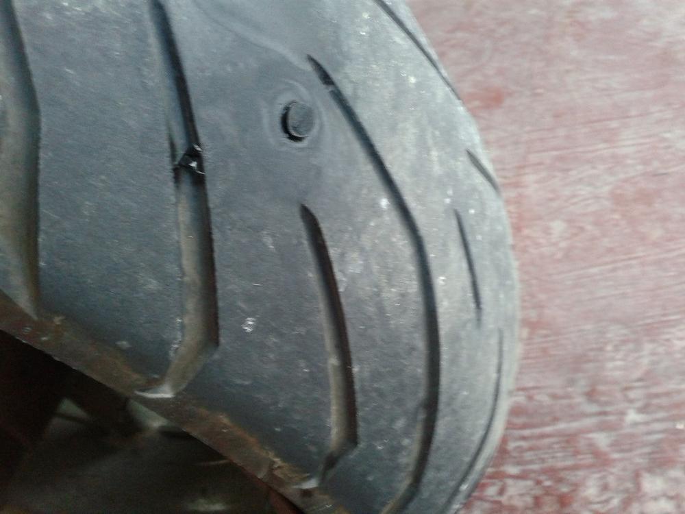 Had a new Rear ST Angel fitted to replace this one, will keep the old tyre. Will be interested to see inside of the old one to see how well the mushroom plug I did the repair with was fitted.