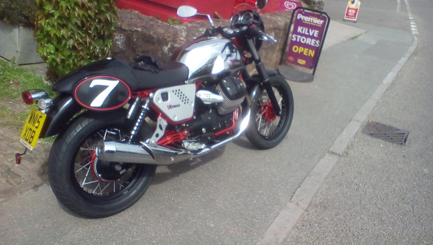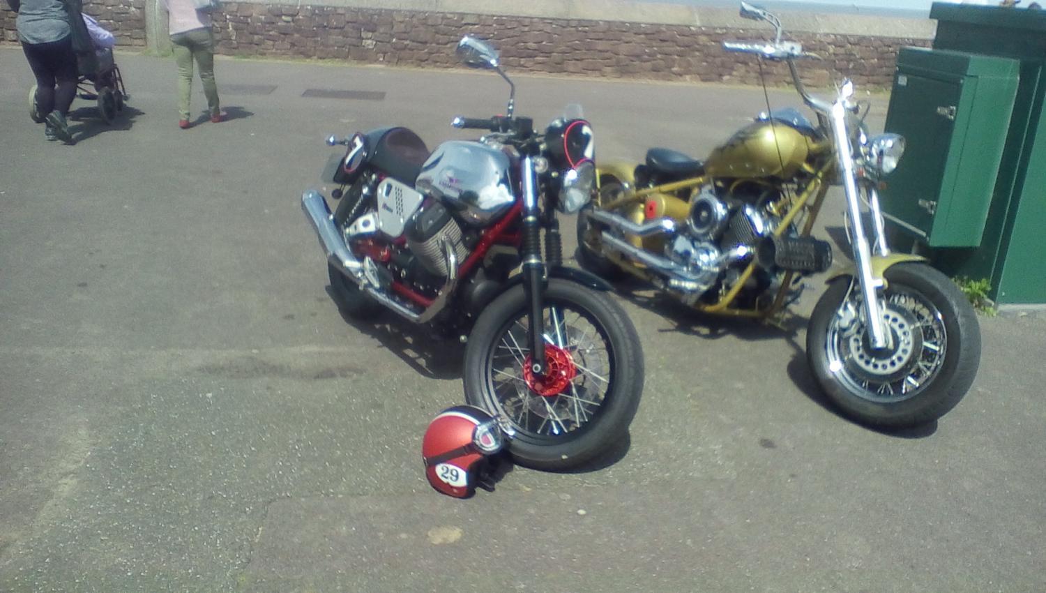 Rode the Guzzi to Minehead today ,stopping at Riders in Bridgewater on the way , getting used to it, I reckon 75 miles each way is about far as my upper back can take , the mind is willing ,just wish the body felt the same way .