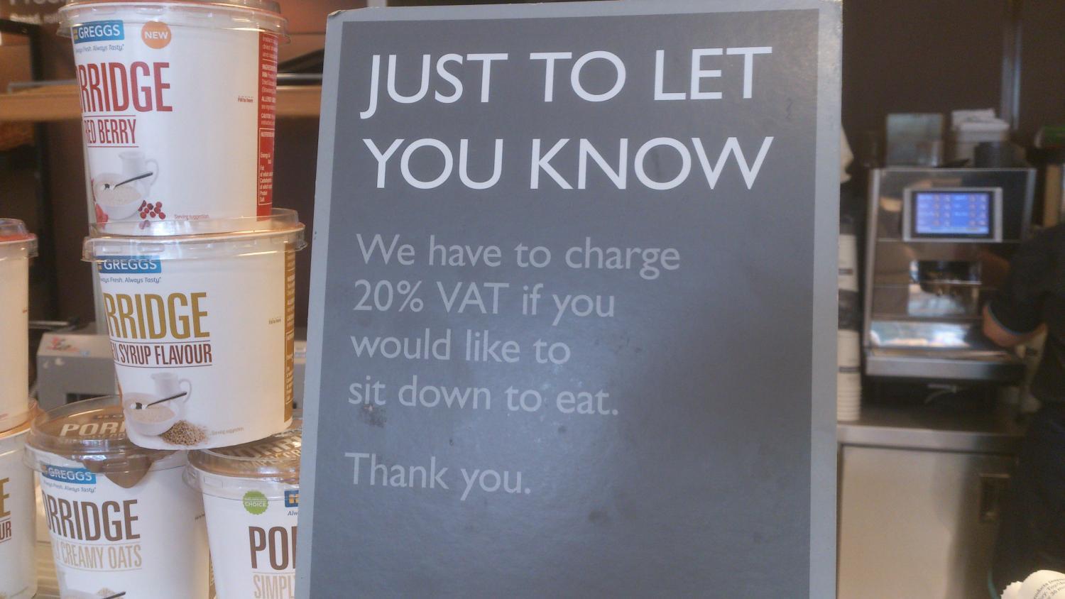 This really fucking winds me up. Popped into Greggs to get a couple of sausage rolls. Big sign on the counter(see pic).