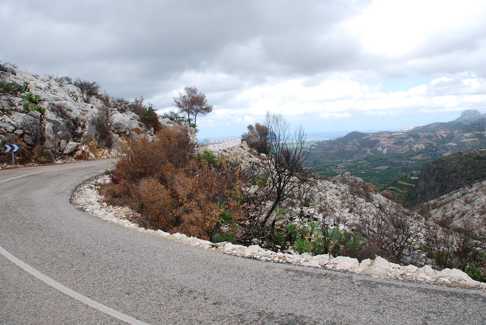 Last time I rode this road CV712 we were dodging a forest fire and the Guardia Civil politely told us to feck off. Not that we needed any telling. That was about 6 weeks back. I tis nice to see mother nature repairing the damage. Amazing really when you consider we have had practically no rain for months on end until this week.