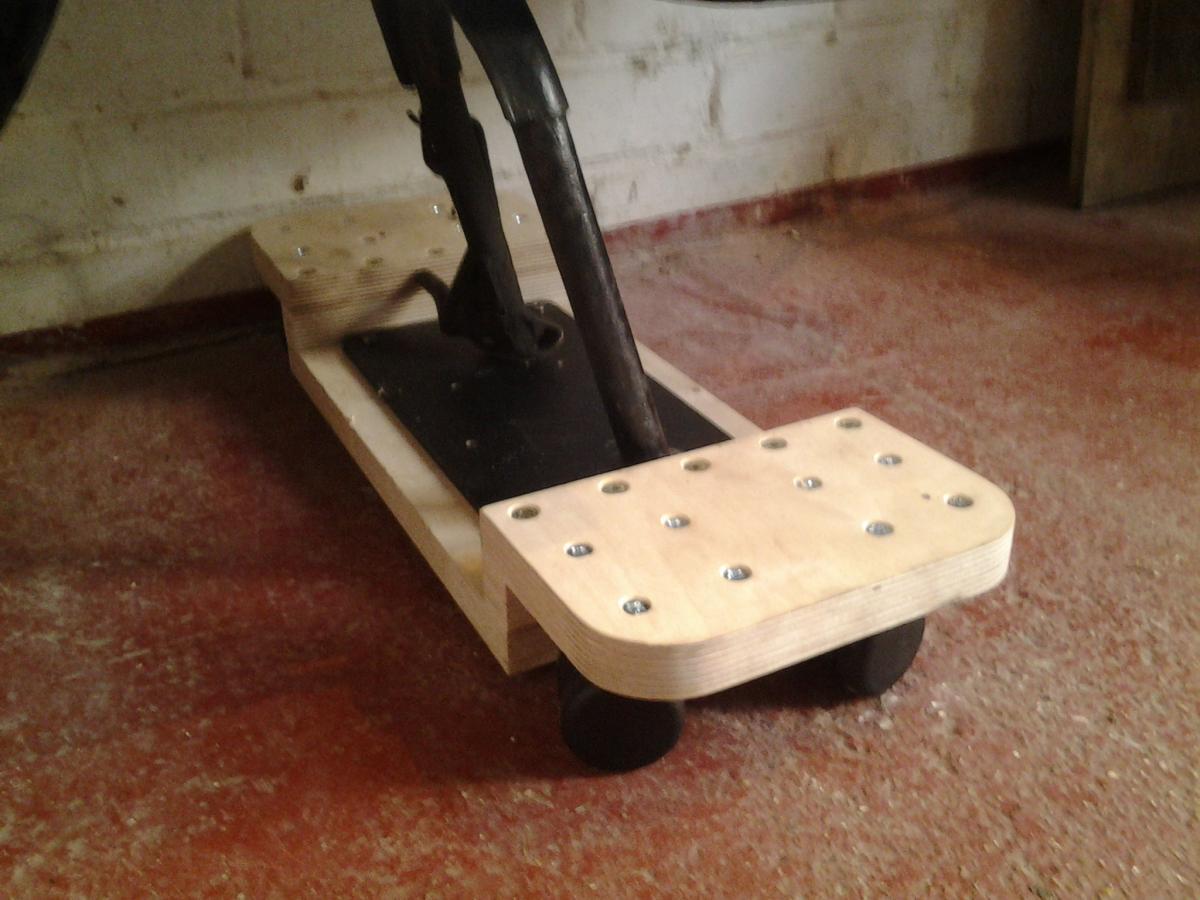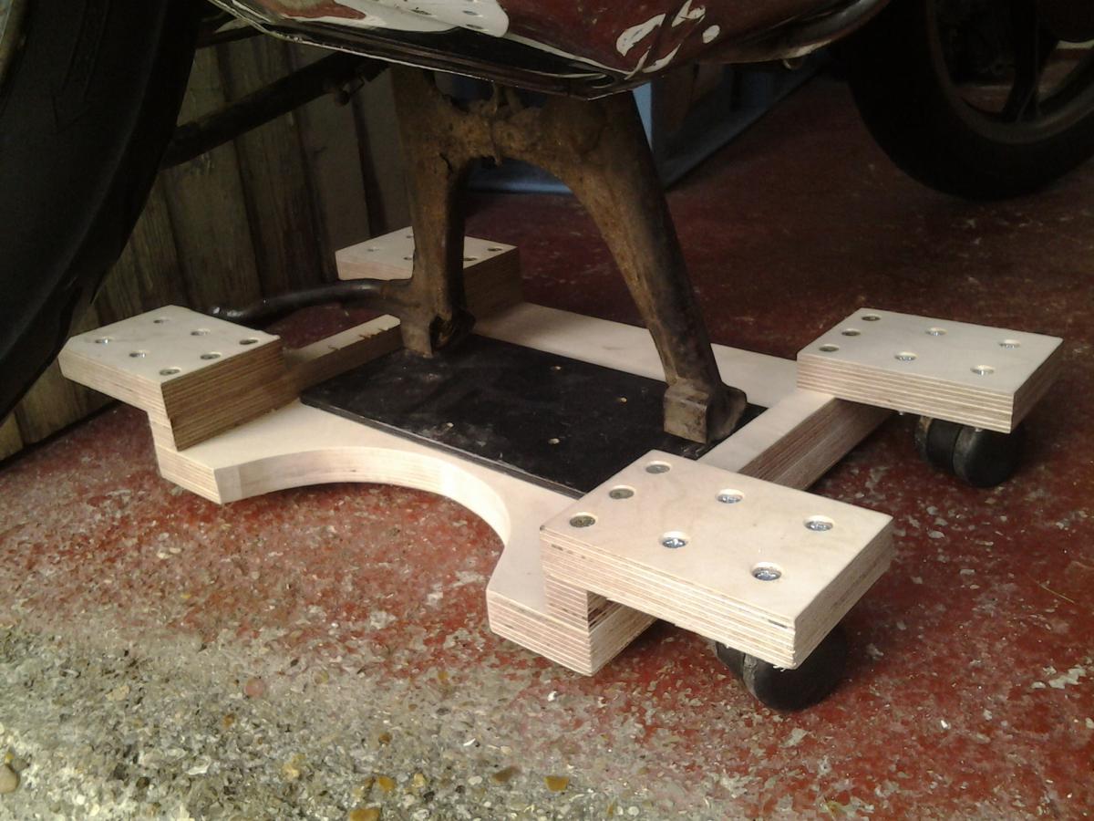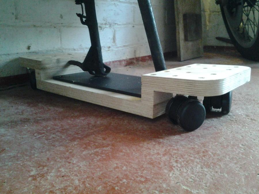 Made a couple of bike skate boards for my jap classic 250's, snug fit in the shed, can now push the bikes in, put them on the boards and push them sideways against the wall, bikes are higher off the ground so if I push the bikes back over the step to the shed it makes rear wheel removal easy...