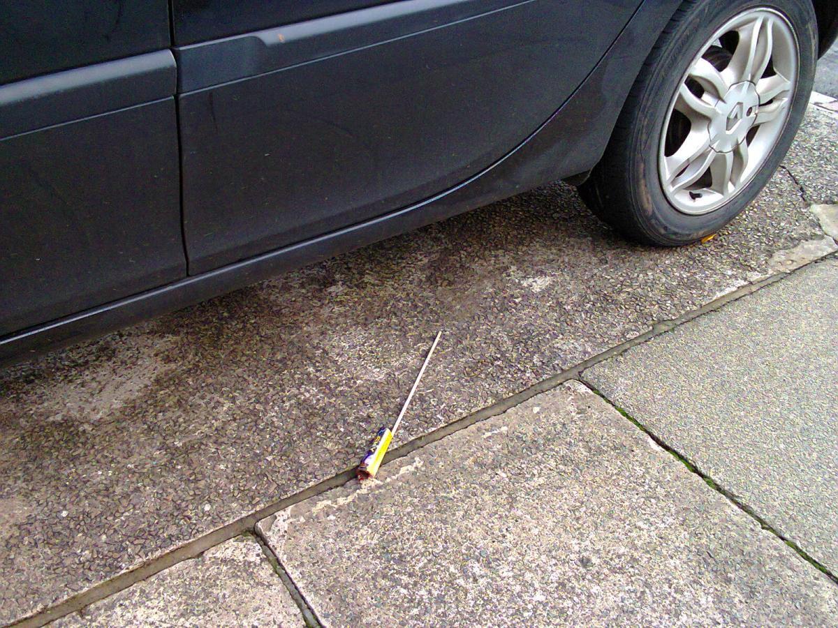 And as if to prove my point look what I found, I took this picture exactly where it lay this afternoon in the court yard of sharp hall, from last nights lot. Its only a small one this time but must of hit the car