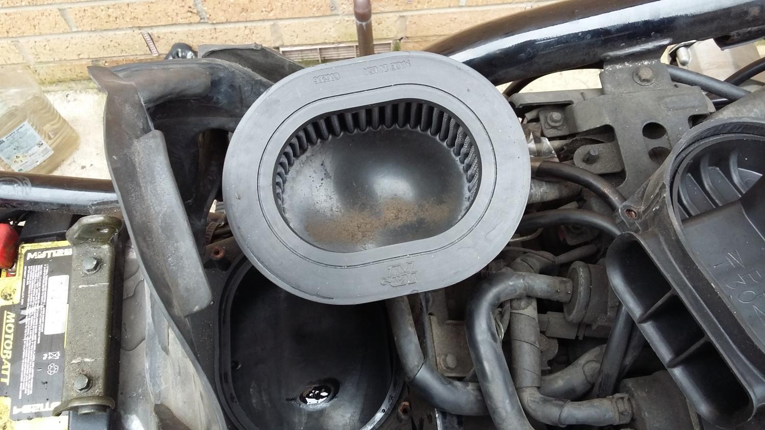 She's been sounding a bit rough of late, been putting it down to the cold weather so decided to give the air filter and box a bit of a clean- just as well, it's surprising how much crap had accumulated with winter riding. :rollin :rollin :rollin