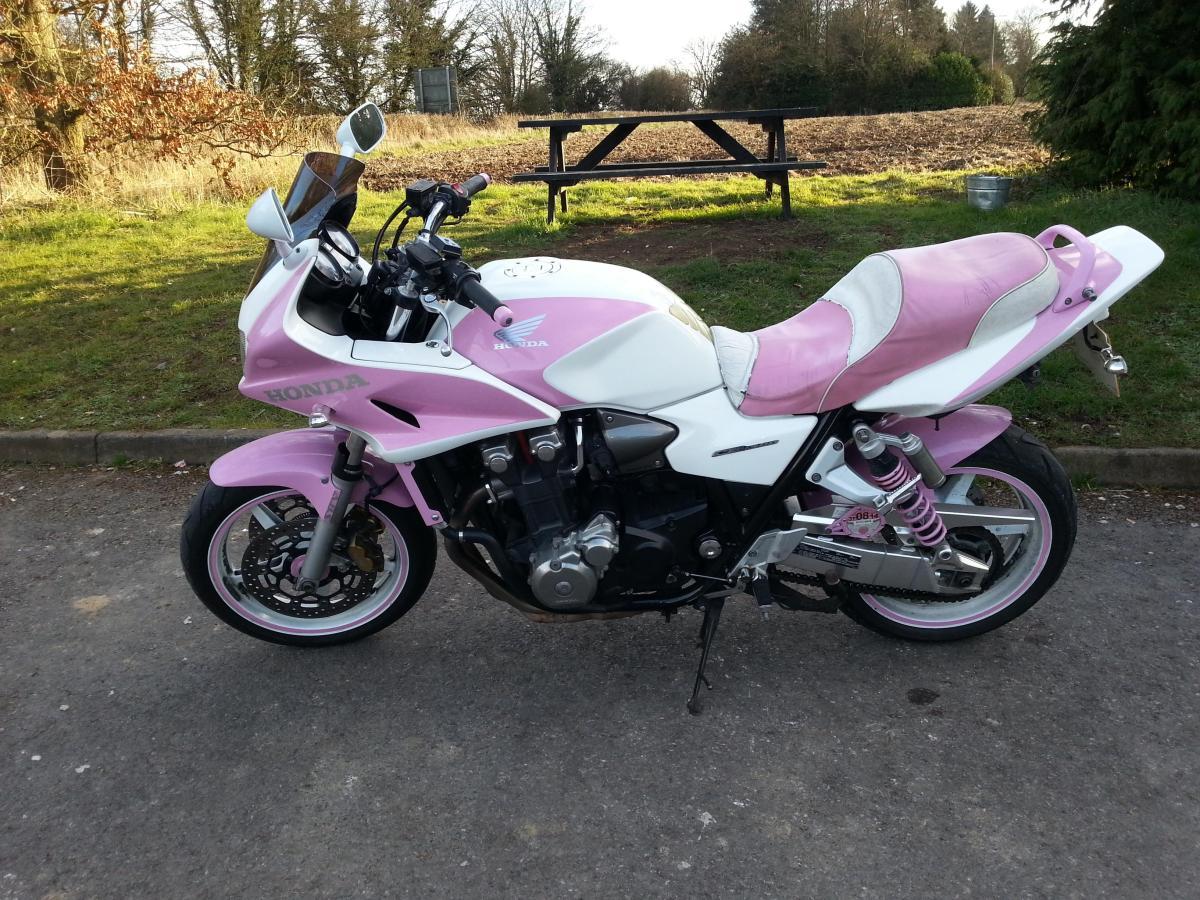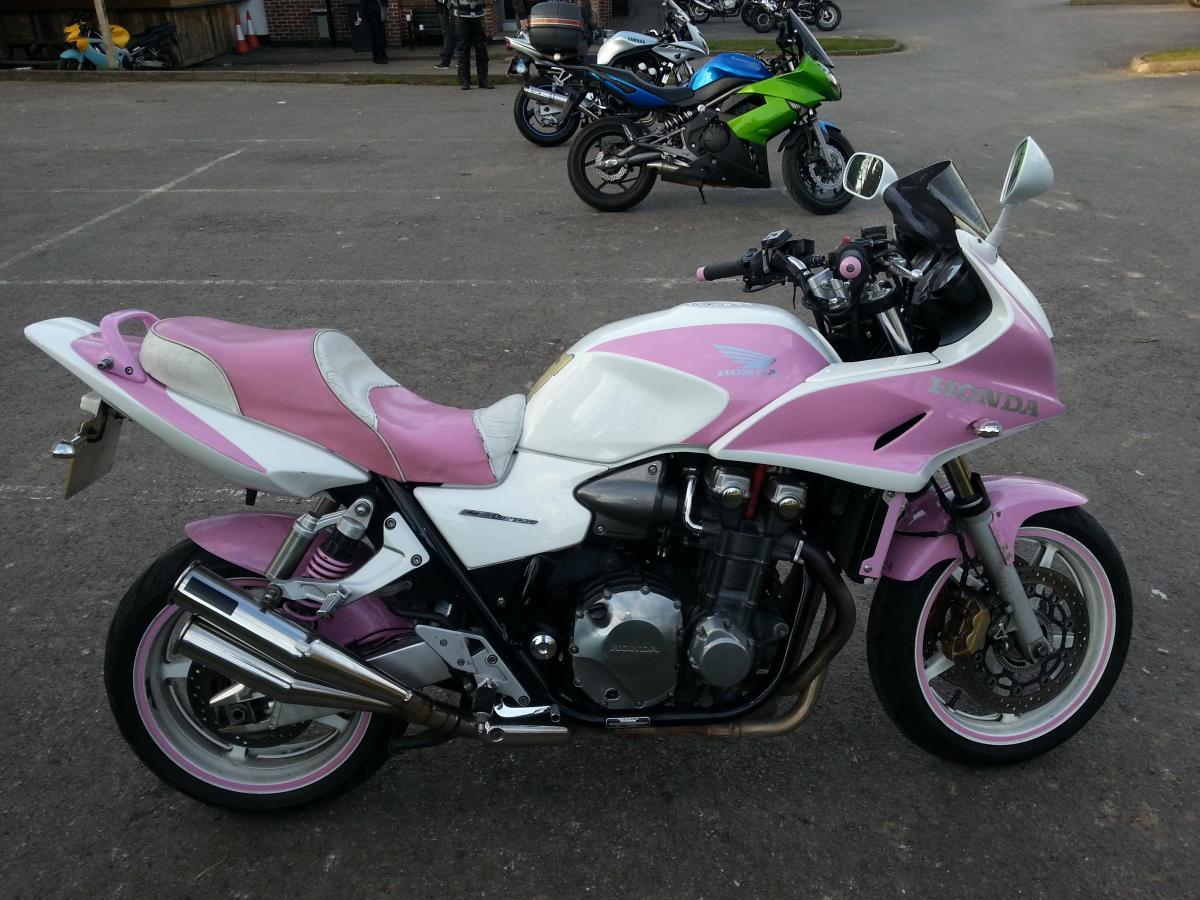Went down to Loomies Cafe this afternoon on my 600 FZS for a short run and a cup of their delicious tea, saw the bike in these pictures that belongs to Hayley Piper, its a smart looking Honda CB 1300, it is a bike that is obviously loved. Definitely a Females motorcycle though.