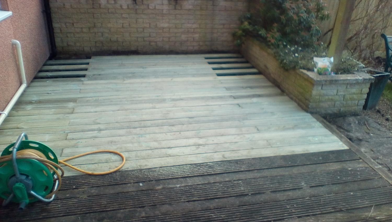 Started to fit the new decking on top the pool .