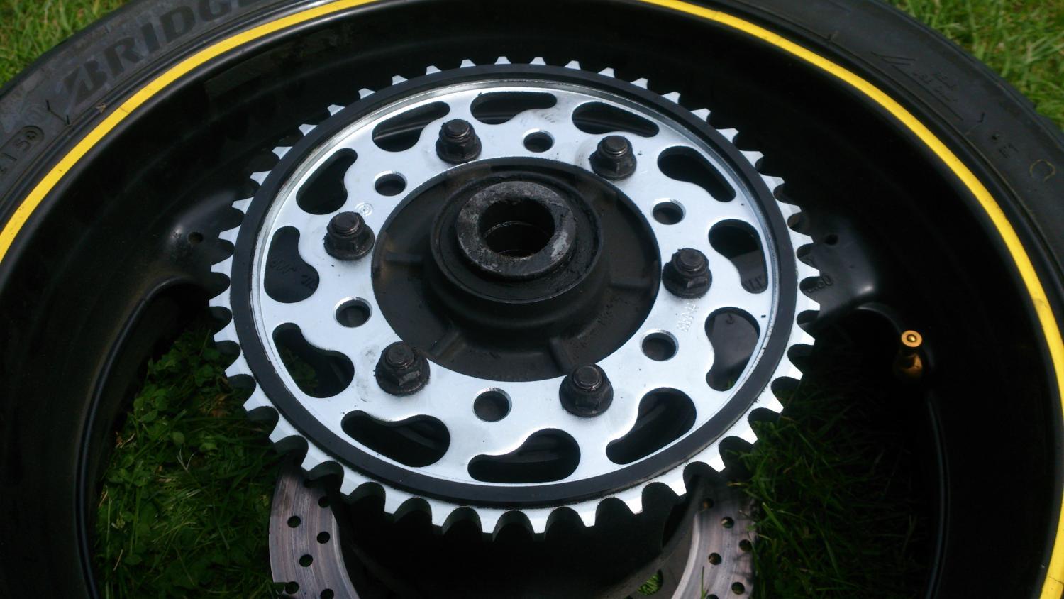 Managed to free up my seized wheel adjuster with a ring spanner and wind it back in so will fit the new swing arm at a later date and fitted new rubber cushioned sprockets front and rear. Should be super smooth and quiet when she's ready for the road.