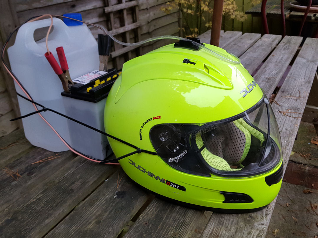 What you don't see in the video in the post above, is the 12 volt battery and the 5 litre water bottle cable tied to the back of your helmet. :eek