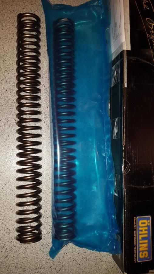 8.5 N/mm Ohlins linear springs. Woo woo! Santa came early and brought a treat for the baby 600. :thumbup