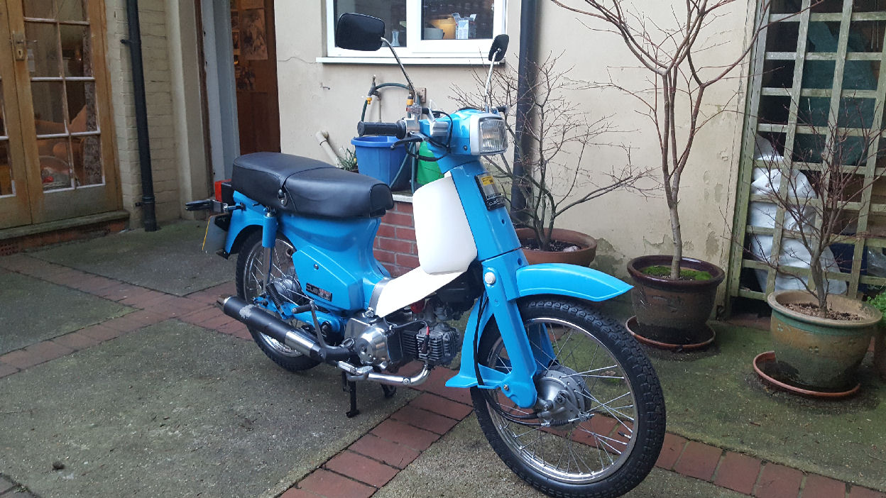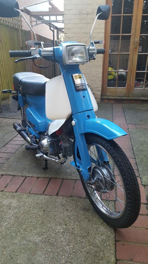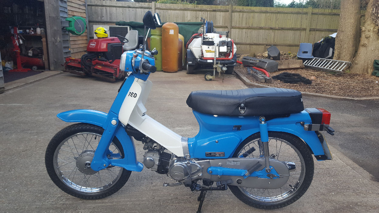 New tyres, tubes, rear shocks, front leading link bushes and pins, brake shoes all round, new clutch plates, LED indicators (2 of the original were broken) battery, new bake light lens, new speedo cable, front brake cable, front sprocket and locking plate and chain, new seat plus lots of love and elbow grease, but it was worth it, such fun to ride, 54 MPH flat out but goes uphill absolutely fine, seems quite low geared, but my understanding is they were built as a city runaround, so no need for it to be any faster but its great pulling away from lights and junctions.