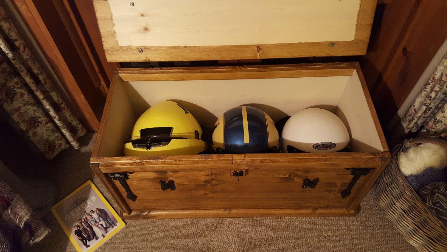 Here is my latest bit of handy work, wife was complaining about my skid lids being left about the house. I was fed up with my great nephews coming into the house and using them as Buzz bloody Lightyear helmets dropping them, scratching them and cracking the visor on my LS2 Convert, £27 quid for a replacement visor. :'(