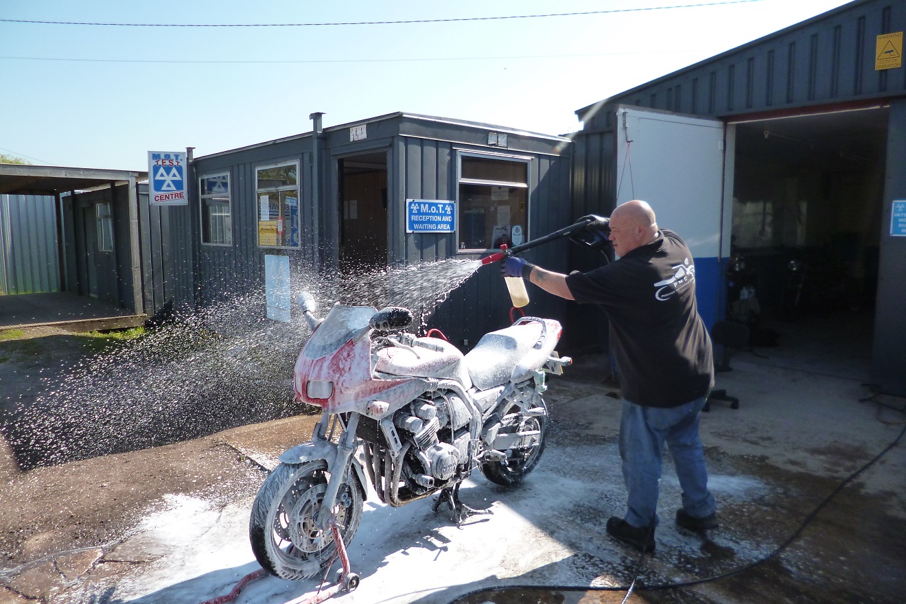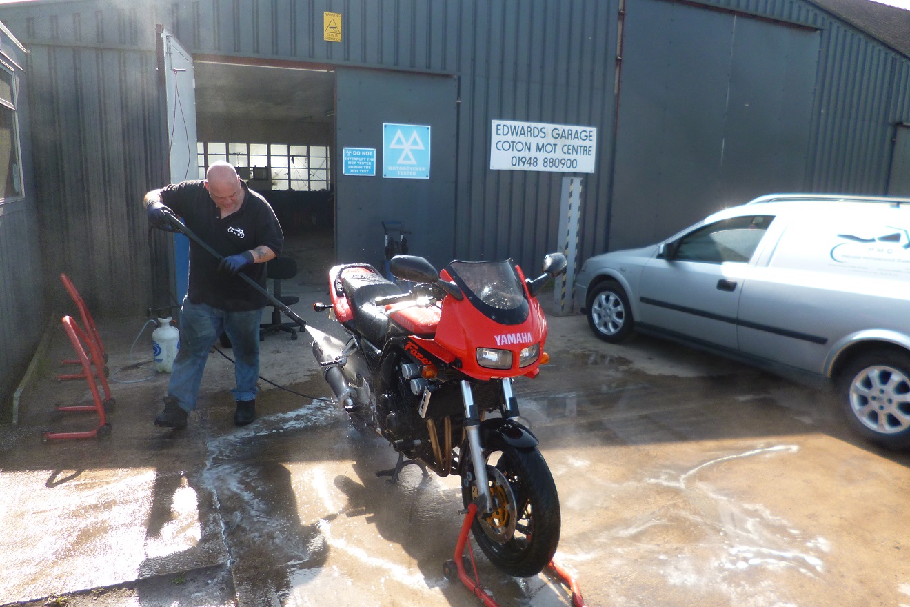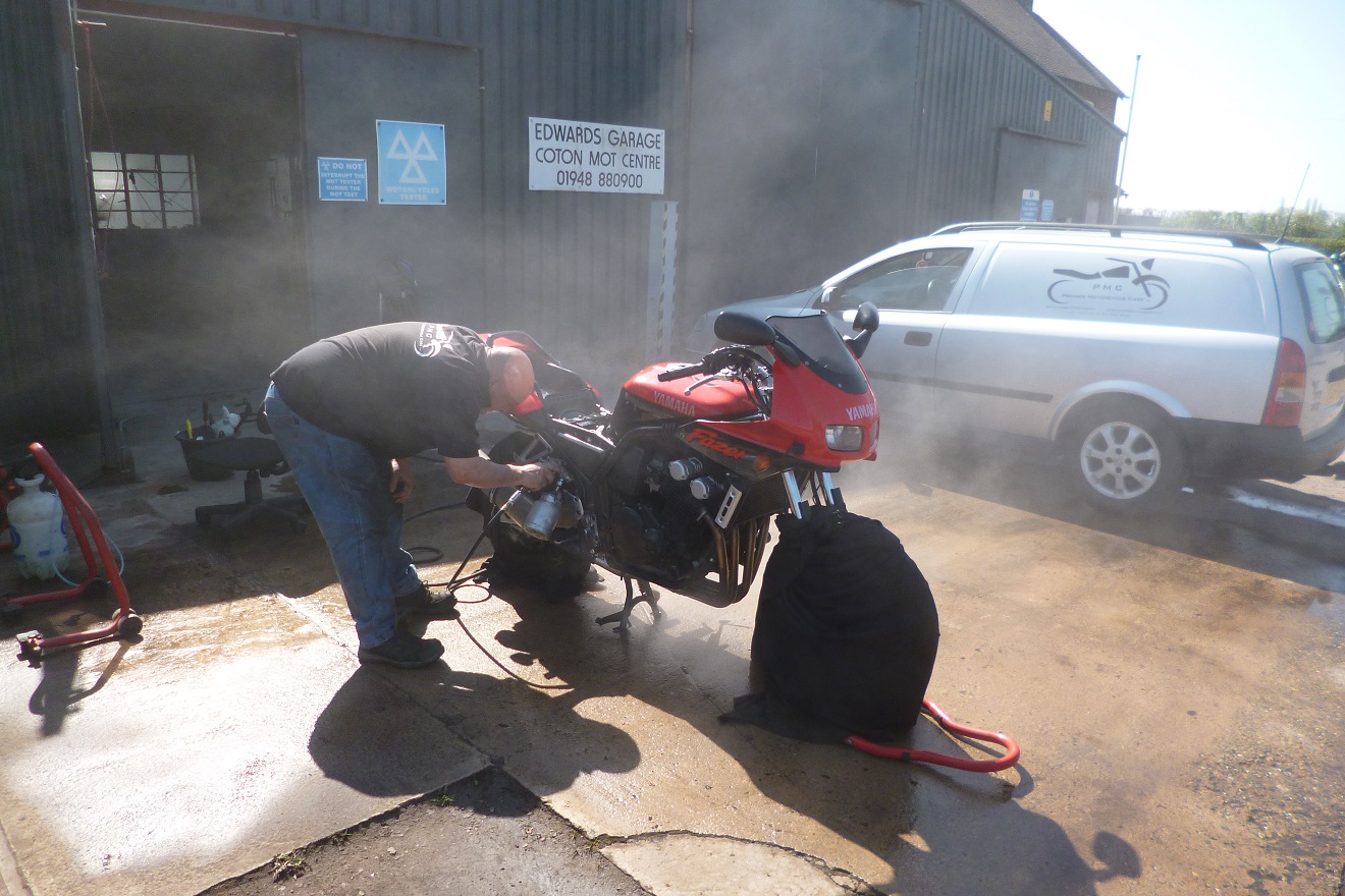 Yesterday, actually. I took the ' winter ' Fazer to Barrie Walters of Premier Motorcycle Care, Whitchurch, Shropshire, for a treatment of ACF 50. Takes around two hours. Wash , shampoo , rinse , dry , apply ACF 50 , final wipe down. Protected as much as possible for the next 12 months. Taking my other Fazers there in the next few months. Barrie is a top man. Founder of Raven Riders Motorcycle Club, Raven Cafe, Prees Heath, Shropshire.