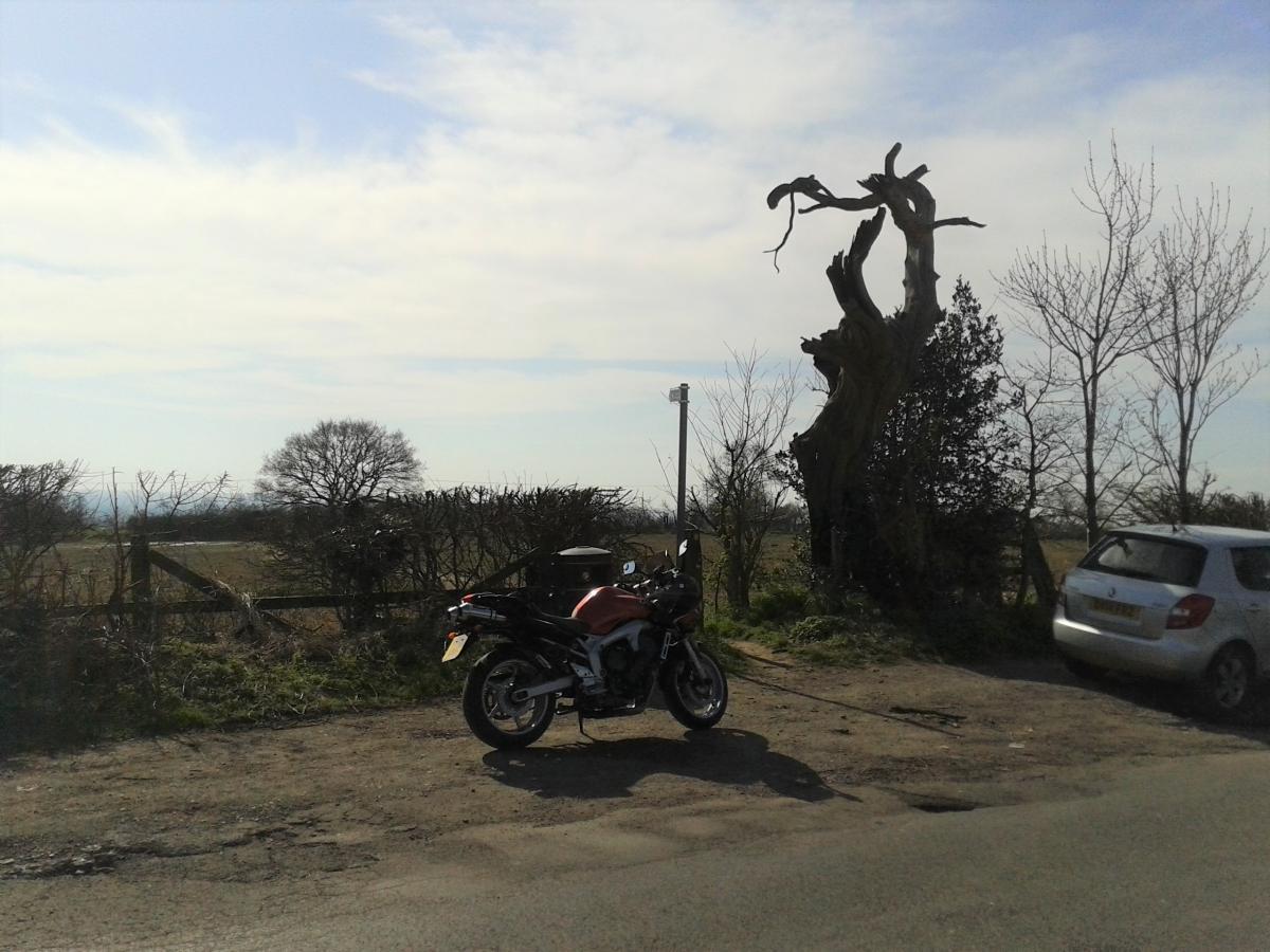After giving the bike a coating of acf50 yesterday followed by a wipe over, out this morning in the sunshine, only about 30 miles just to check no leaks etc after the oil/filter change last week. Finished up stopping by a local landmark, know as the Hangman's Oak, and enjoyed the view down over the Trent Valley