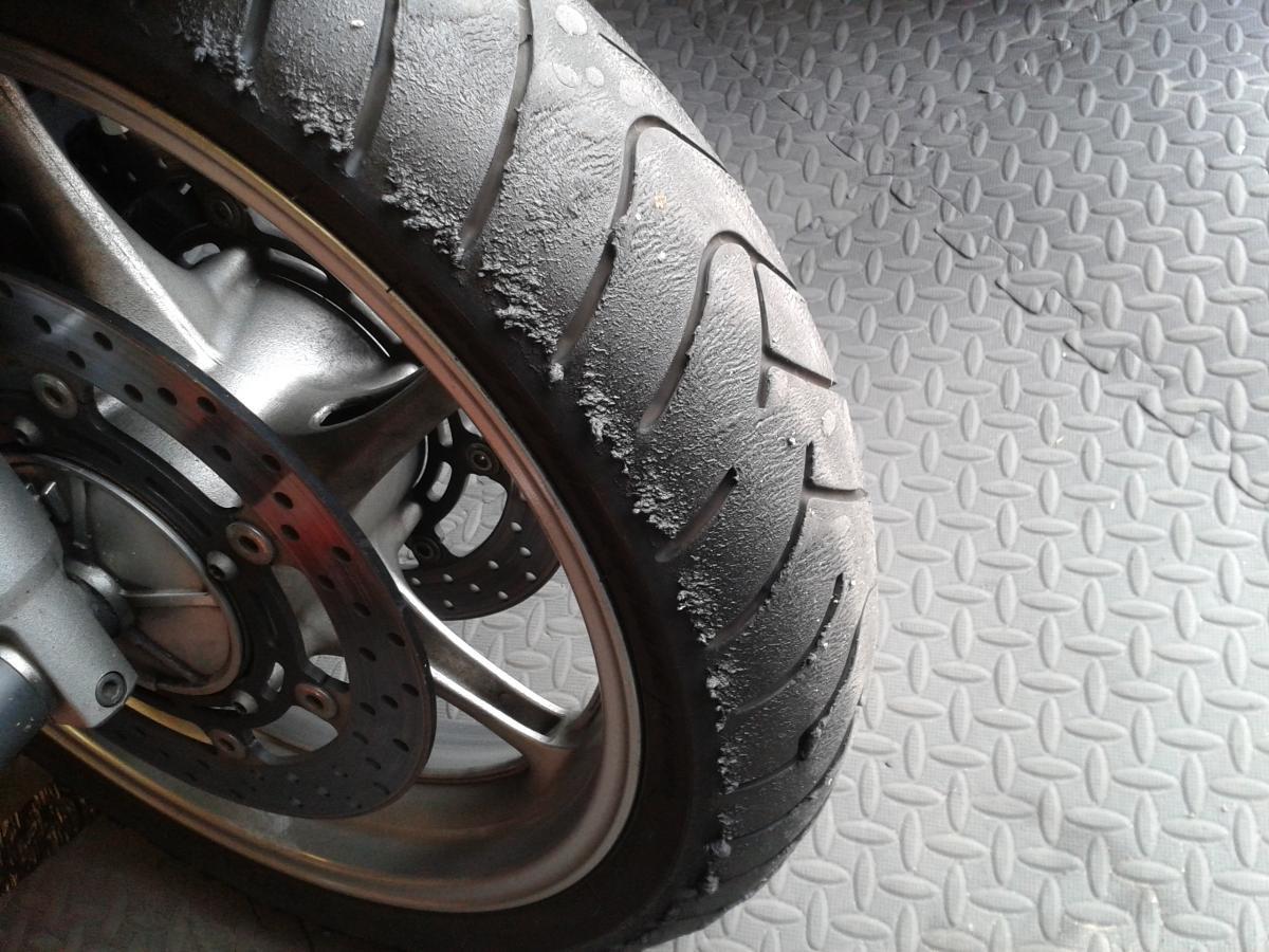 Re-fitted the road stuff back onto the bike after yesterdays trackday at Donington, last one of the year for me, that's five this year. Didn't realise till today how hard the front tyre had been worked too. Blisteringly hot day though, fine in the morning but oppressive in the afternoon and too knackered for the final session.