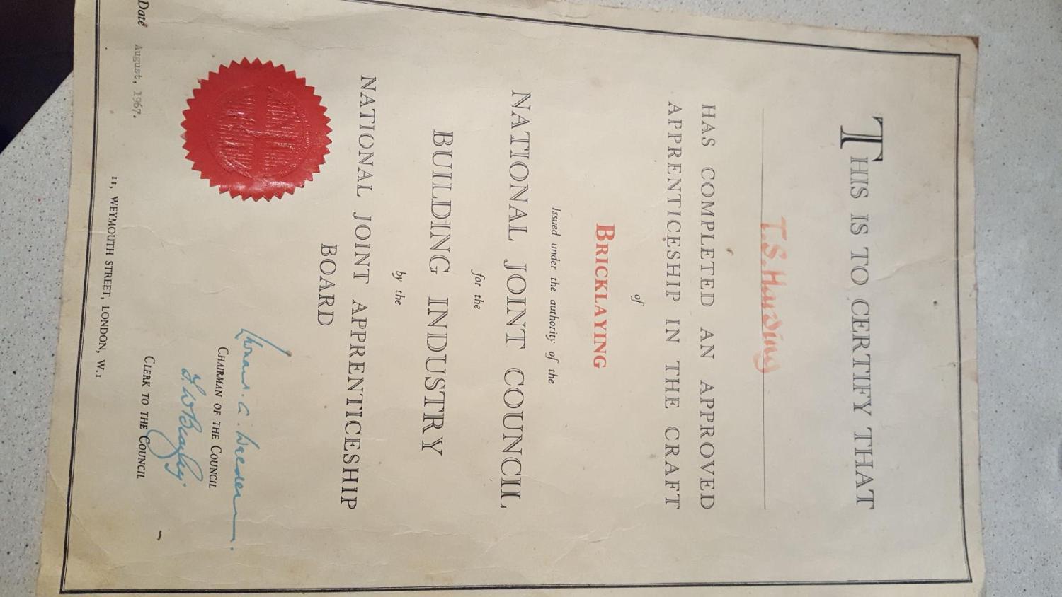 (09-12-18, 03:27 PM)ogri48 link Wrote: lol im the same mate. I went back on site three years ago after the shoulder op, but all these three storey houses they build now have high density concrete blocks in he jack walls, and working off the deck on the ninth and final course I was pushing the mortar off the top of the eighth course coz I couldn't push it high enough with my weak shoulder. I was twice the age of the next oldest brickie in the gang (it was a 6 and 2 doing a lift a day), and trying to prove I could still cut it, but after three months the decision was made for me. Id been to thetford and paid fifty quid to take a fifty question test for my general site safety ticket, but it only lasted three months then I had to get a bricklaying specific one. conversation between me and the spotty young HSE officer on site went as follows.. I left school in 1962 aged 15 did a year as an improver tool maker, but the soluble cutting oil did not suit me and made me poorly. I then did a 6 month trial with a building company on approval as a bricklayer, then started a full apprenticeship in my trade, working 4 days a week on site and one day a week at Guildford Technical College. My apprenticeship along with the 6 months approval was 3.5 years, I continued working for the company for a year after finishing my apprenticeship before going self employed and chasing the £'s from site to site. My qualification now according to NVQ is worth very little, not that I give a toss one way or another as I haven't laid a brick now for 3 years and no one is going to offer an old git like me a start on a site now anyway. :lol