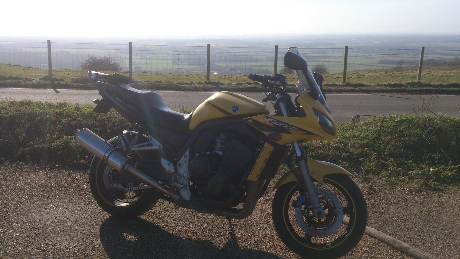 let the rogue shower pass,and went out anyway,had a great 90 minute ride around my 'got no where to head' route plus a extra fast blat along the A303 to see what the fazer has got to offer (bearing in mind ive only pottered around a few times since getting her last october),she's no thunderace ( God i miss the torque of my old Ace) but she goes when the need is there.