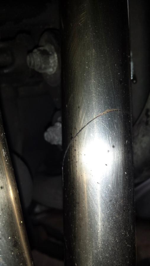 On the nearside downpipe there is a crack. It goes all around the pipe. Anyideas how serious this is and how it can be sorted please?