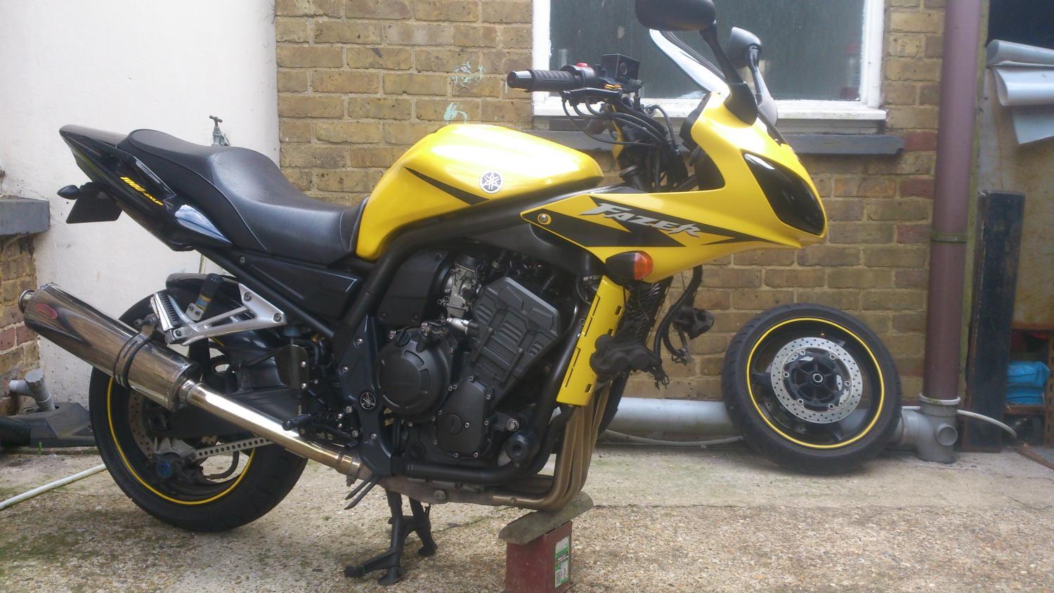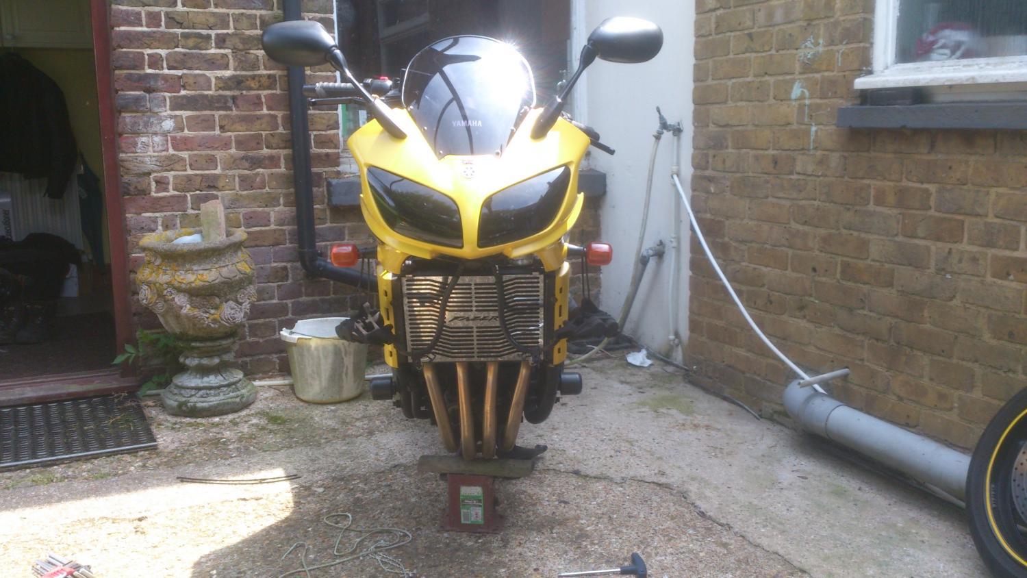 Put my new tyres on stripped and cleaned the brakes changed the oil and filter and...........due to a swollen foot can't get my boots on to ride it Sad