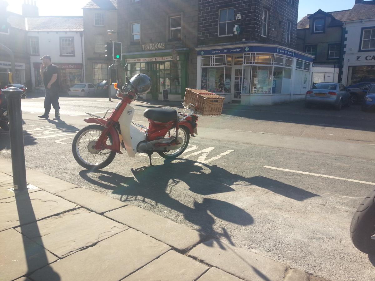 Went up to Hawes via Settle, nice and sunny but not as warm as it looked, spotted this C90 in Settle, I sometimes take a banana or something with me to snack on but a whole picnic is a bit much, Givi are missing a trick there