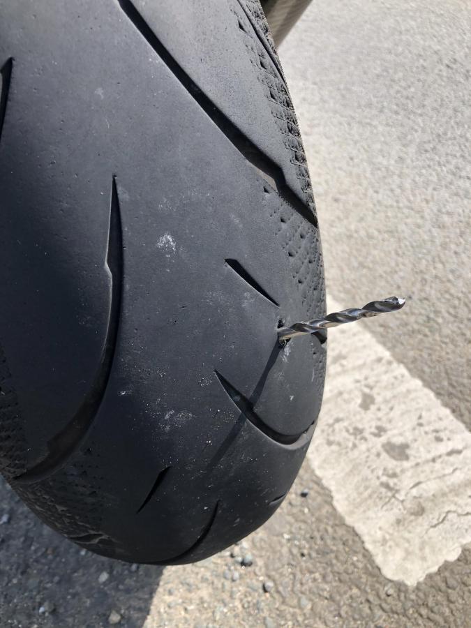 Got stuck 2 hours from with a foccing drill bit in the rear tyre