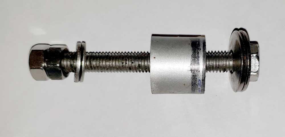 On the other end are two M8 bolts (locked against each other) and two 12mm washers which press against the sleeve.