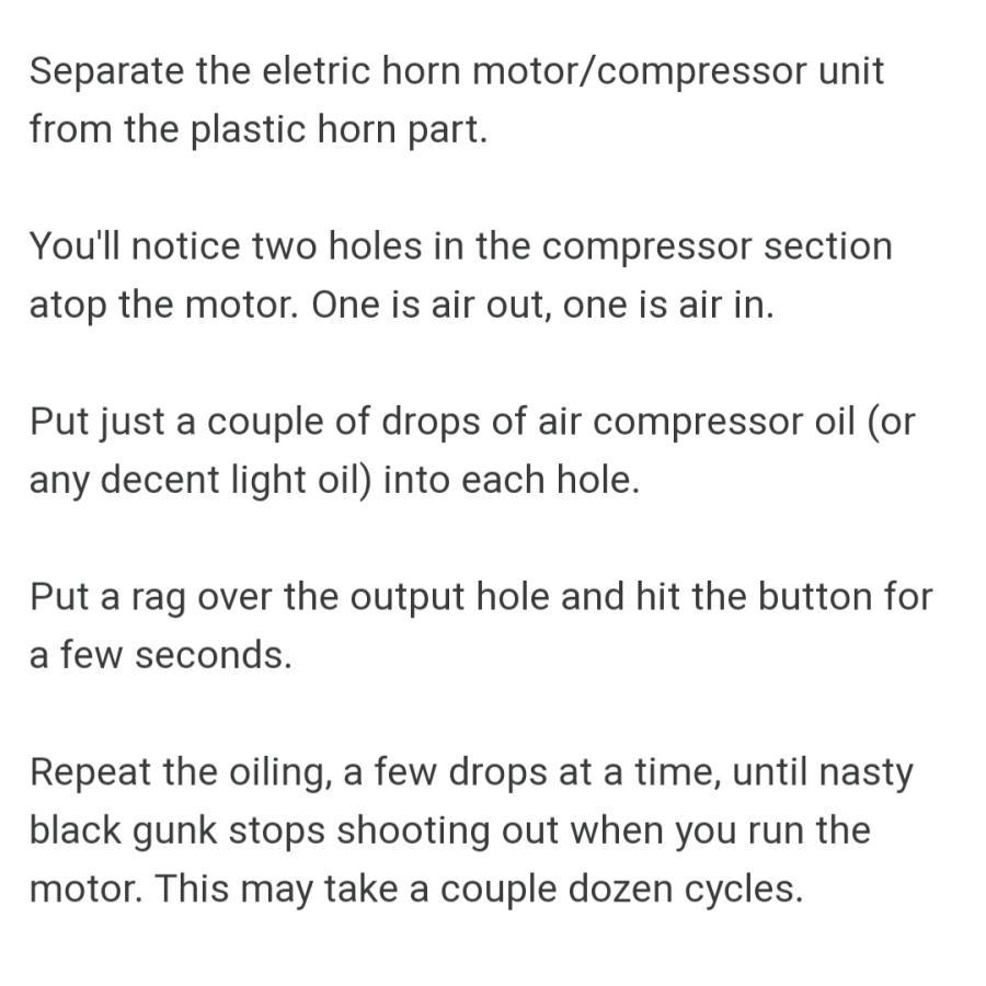 My air horn must've been on my bike close to 10 years now, so it would make sense that a moving part might need a drop of oil bearing in mind the amount of different weather conditions it's been through in all that time.
