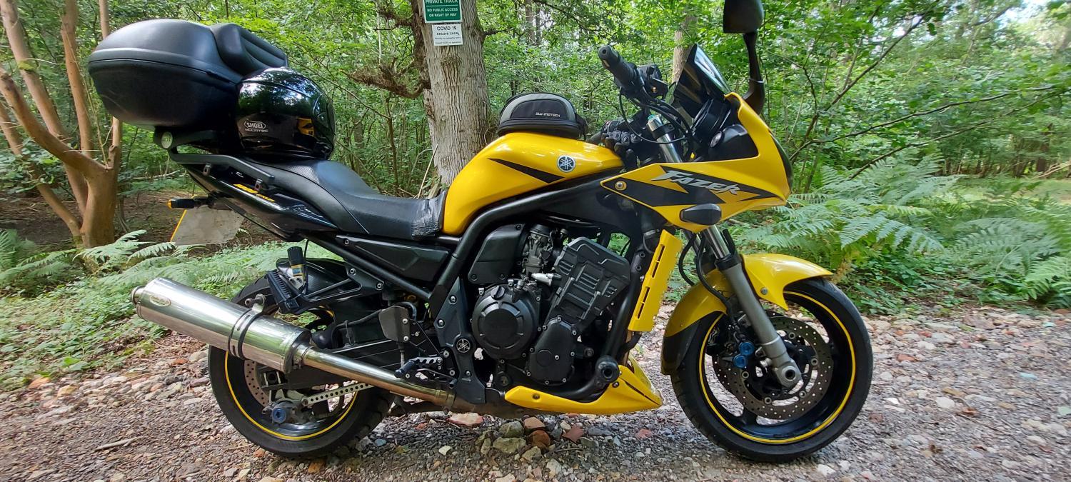 Donington Park for me next Monday (road bike day), so I thought Id get the Fazer out and give it a whizz around the dales just to make sure its fine and ready. Flipped the side stand up and struggled to push it. Double checked it was in neutral, looked at the rear and the foccin tyre was flat, no8 phillips firmly embedded bang in the centre tread.. Not enough time really to be ordering from the web, so searched around for another BT023 Notts/Derby area. Racing Lines Derby had one in stock so whipped the wheel off and dropped it off there, called back an hour and half later to pick it back up. Refitted wheel, chain tensioned etc. Will be out tomorrow on it sometime to scrub it in.