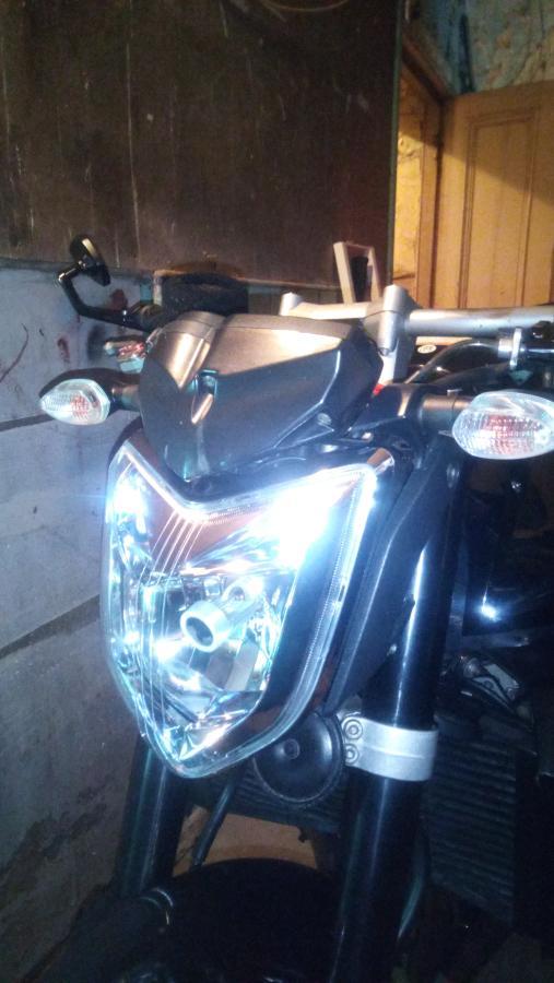 A few more aesthetics today.  Received the new (Chinese) headlight to replace the yellowed existing item that was also losing chrome from the reflector along with new side light bulb holders to replace the poorly fitting previous items that the last owner had siliconed in place.  Also fitted a LED ring main bulb that has a little fan in the end to move air over the heatsink.  Lastly, replaced the front mini indicators with OEM style clear lens items (also Chinese).