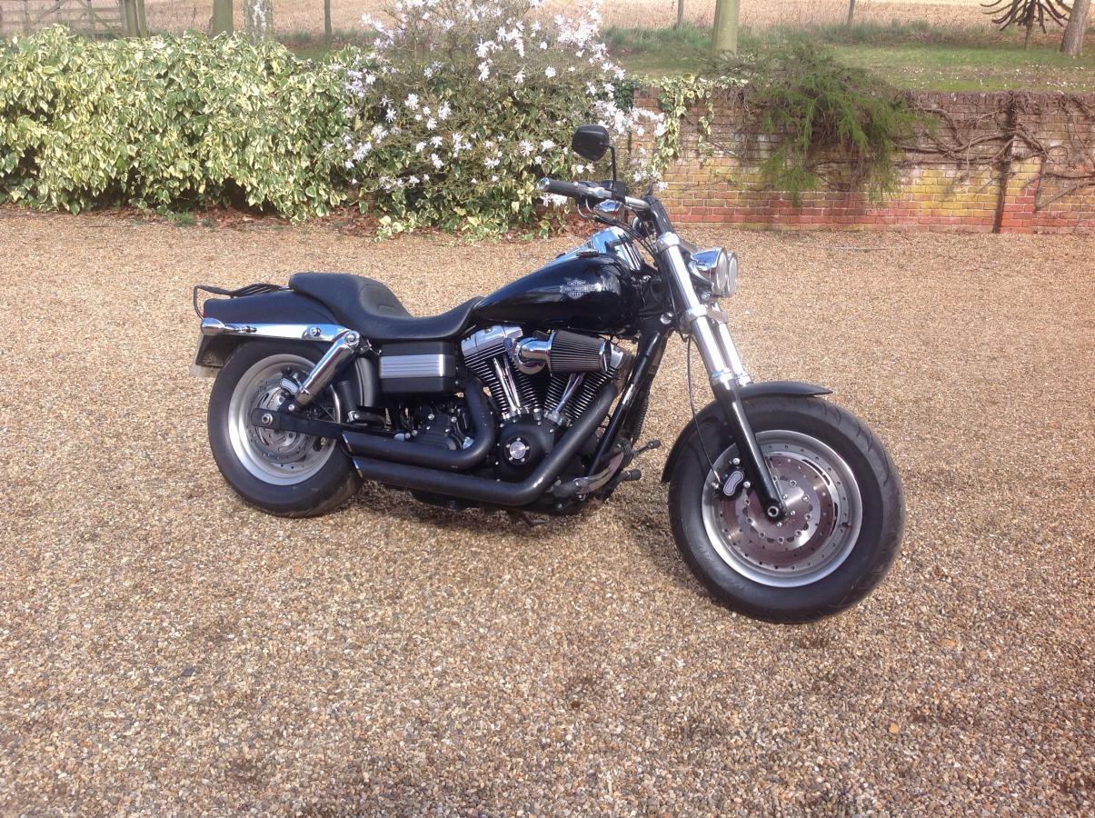 Ok blokes, finally started work on sorting the dyna before my son gets it back for spring. Done the easy stuff first, like putting that horrible stock light back on, last job is paint. It was matt black, he prefers gloss. Tank was easy ( I'd bought a gloss one two years back, new in the box off e bay for £190, they list at summat like £600!!), done it yesterday, was a swine of a job as the fuel injector fuel pump is in the tank and has to be partially dismantled inside the tank through the hole in the top, then obviously re assembled vice versa)