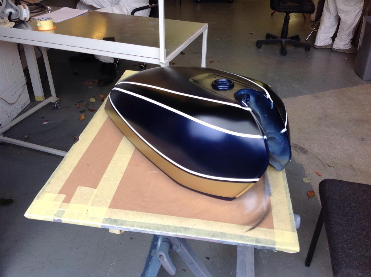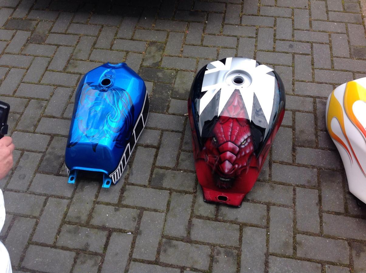 That old gs850 tank...two days prepping, two hours painting, two days finish lacquering and polishing..the course was £1390, I've since spent £1100 gearing up, big lump of that was a decent s/ hand 'pressor..