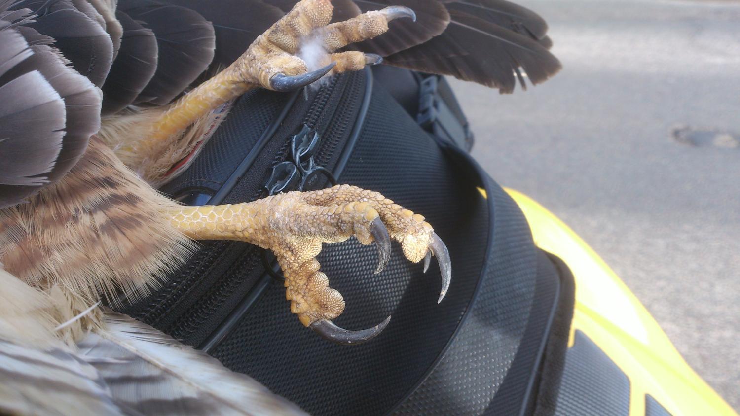 I had a bird strike while gunning it last summer, hit my shin above my boot and i was screaming in pain inside my helmet....i didnt see what bird it was and i was a bit saddened coz at the speed i was doing it musta been like being roundhouse kicked by the hulk.